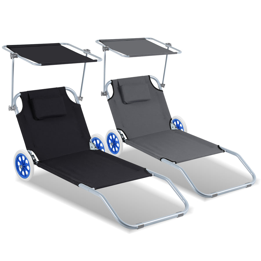 Sonnewelt Sonnenliege klappbar Aluminium mit Rollen und Sonnendach