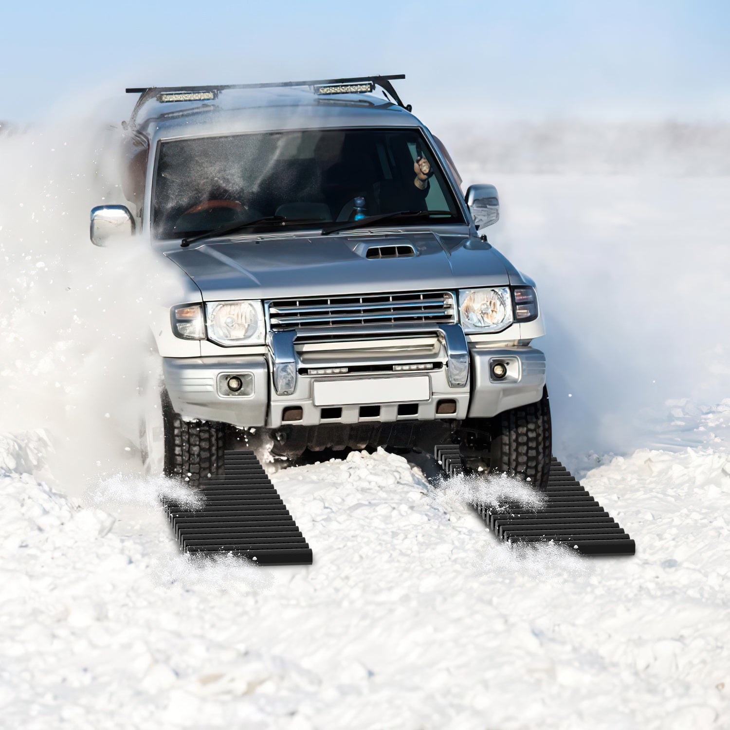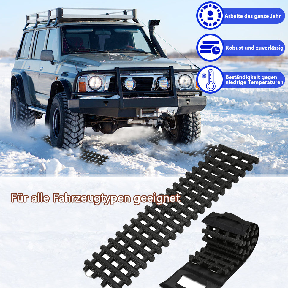 Einfach zu bedienen: Im Gegensatz zu typischen Schneeketten braucht man dies nicht am Reifen zu montieren. Einfach auf die Fahrspur legen und ohne durchdrehende Reifen losfahren! Die Anfahrhilfe holt Ihr Auto aus Schlamm & Schnee!Nie mehr Steckenbleiben!