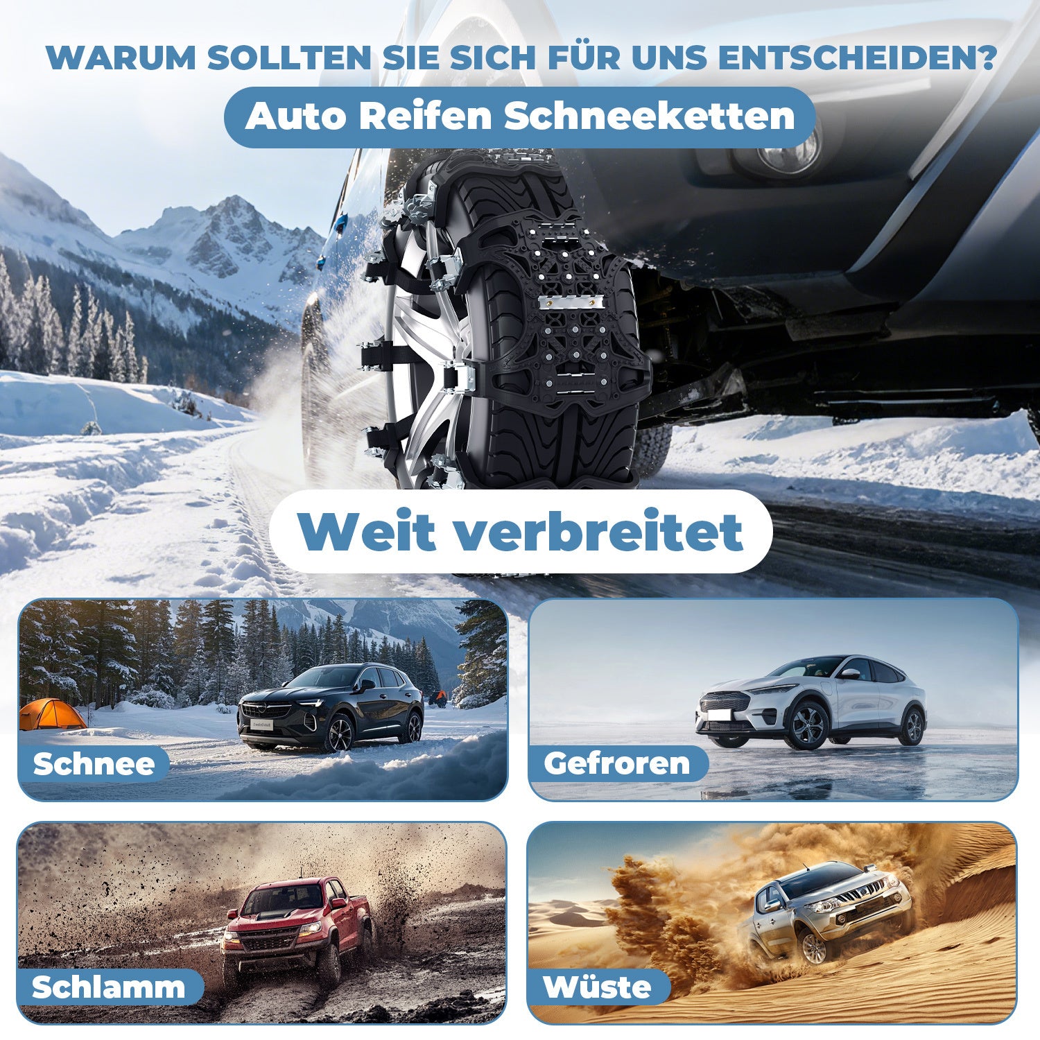 TPU Schneeketten Auto Ideal für verschiedene Straßenverhältnisse wie Schnee, Schlamm oder Eis. Die Befestigungsgurte reduzieren Geräusche und schützen die Reifen. Geschwindigkeitsbegrenzung von 40 km/h.