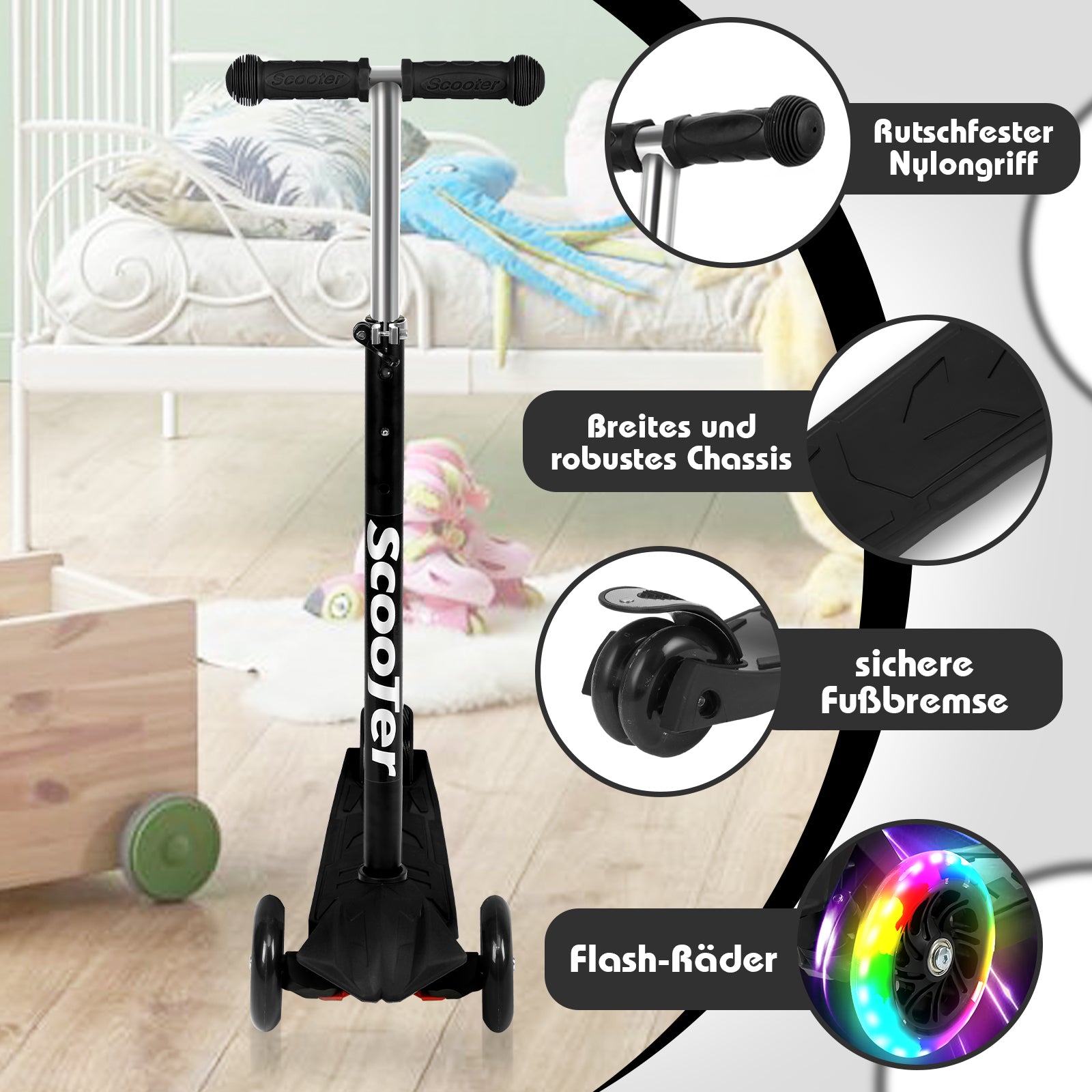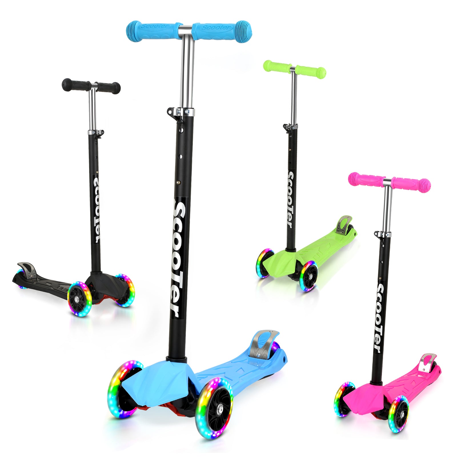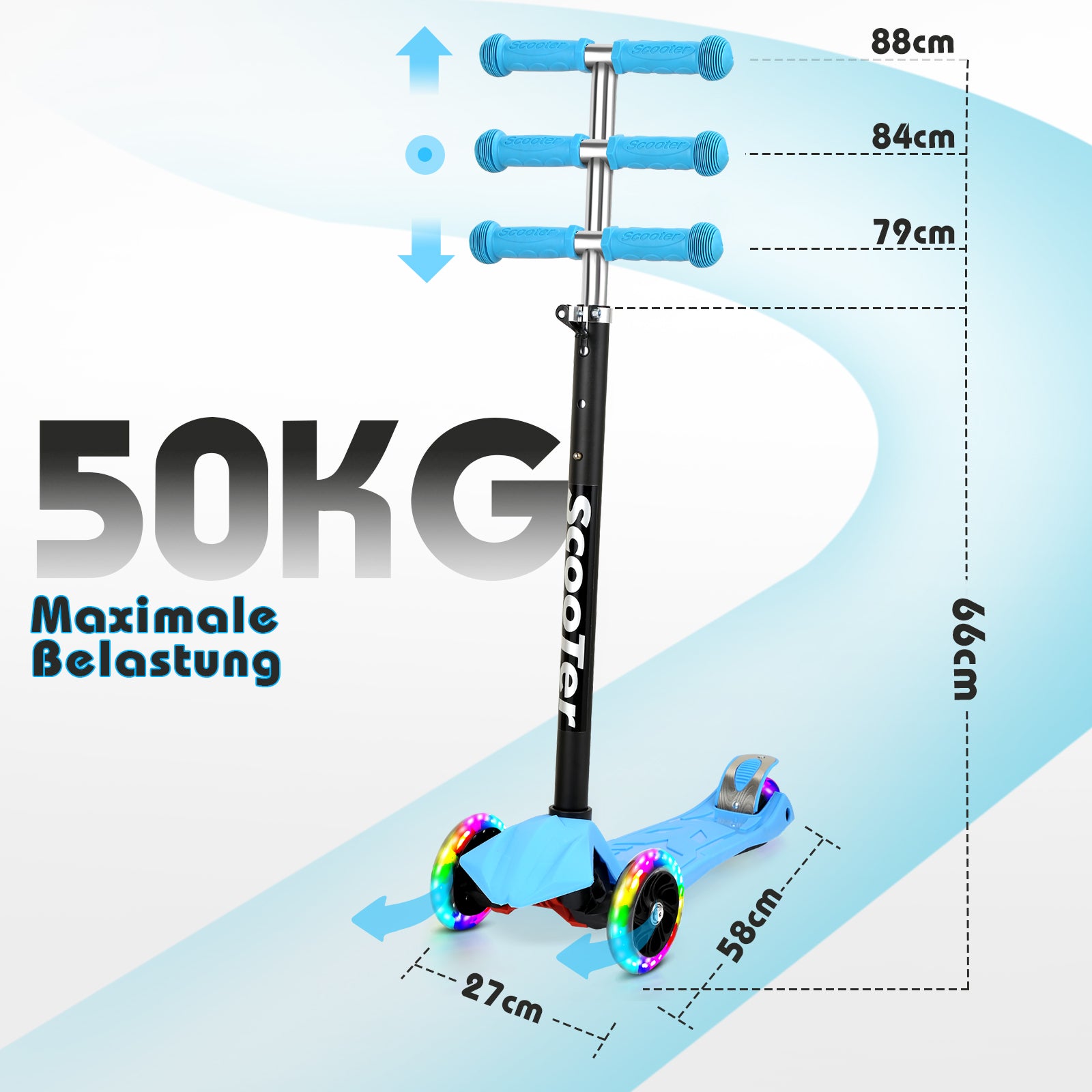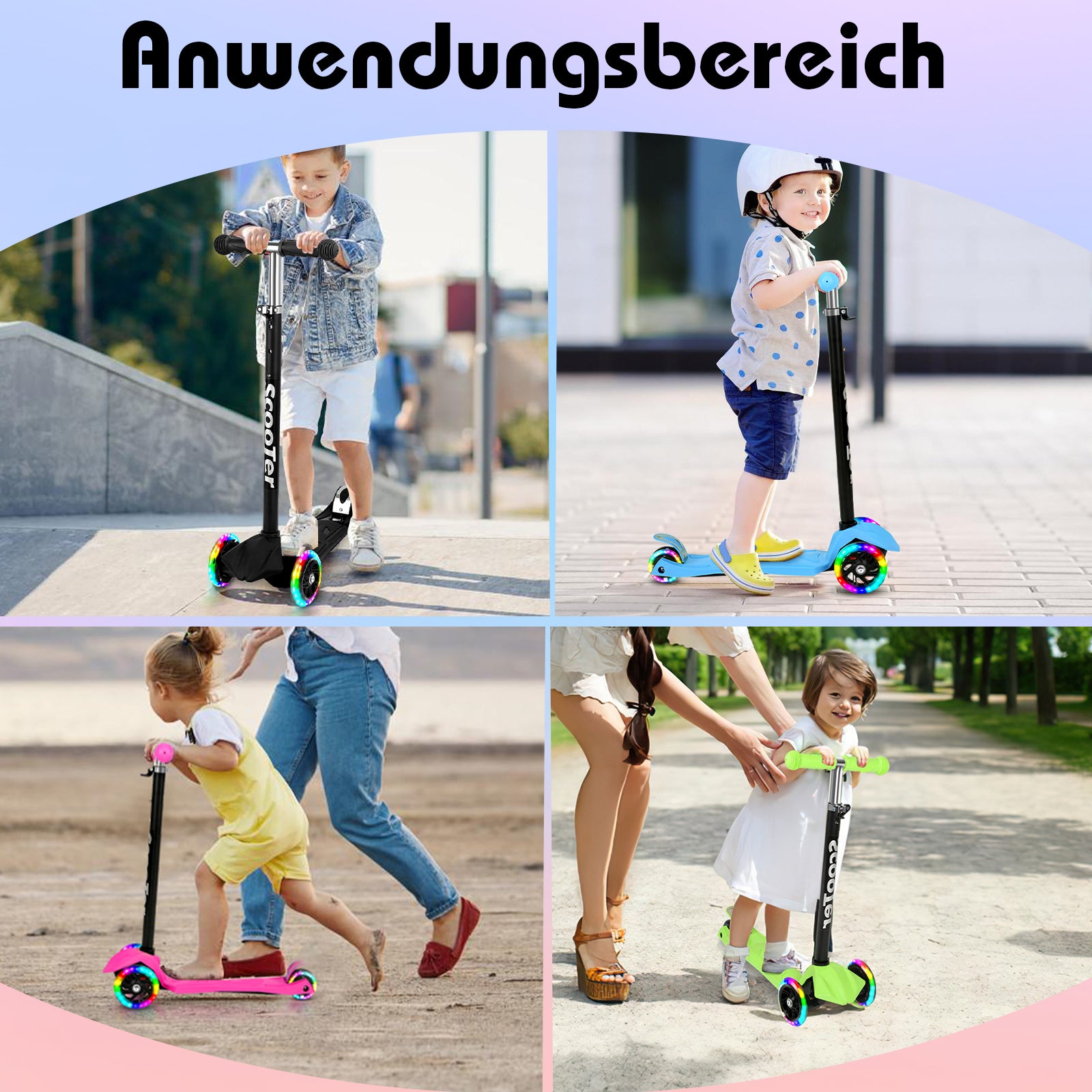【LED blinkende Räde】Der Kinderroller hat 3 Räder mit eingebauten farbigen LED-Leuchten. Legen es auf den Boden und treten es sanft, das weiche Licht wird sofort mit dem Kind gleiten. Kann Tag und Nacht gesehen werden.