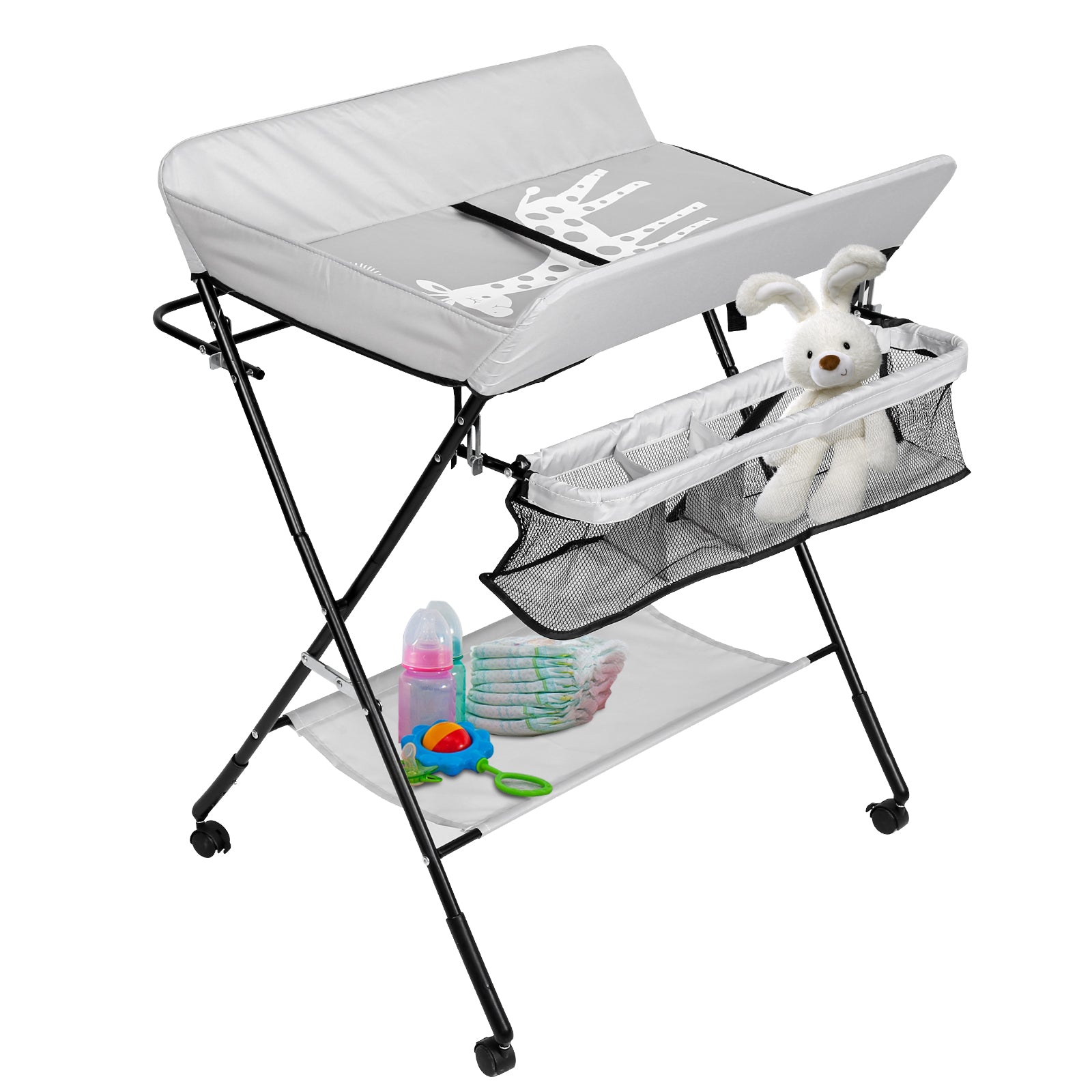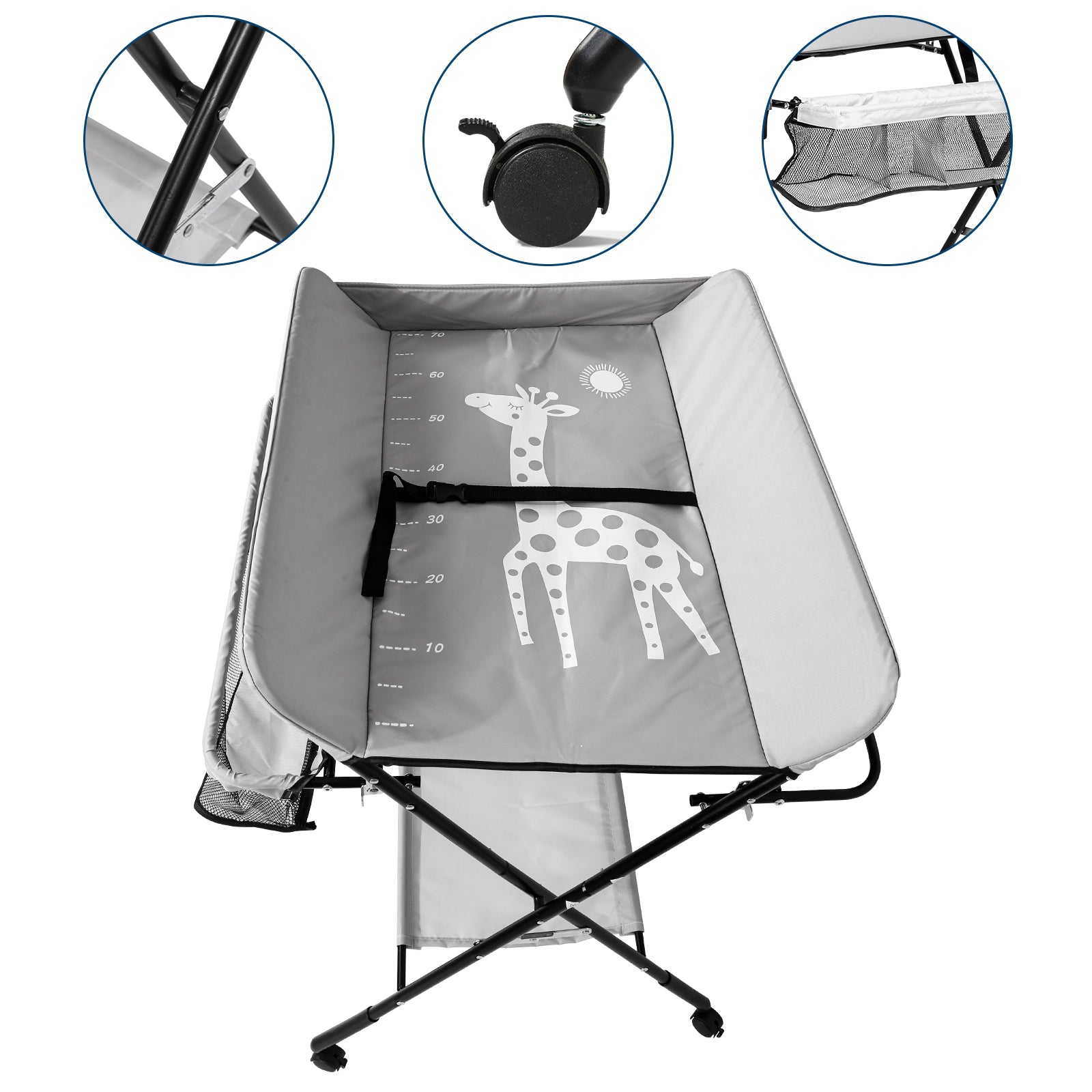 【 KLAPPBAR UND PLATZSPAREND 】Dieser Wickeltisch kann zusammengeklappt werden. Es kann mühelosgeöffnet und einfach bedient werden. Sie können es unter das Bett stecken oder hinter die Tür stellen, wenn Sie es nicht brauchen, und es nimmt dabei überhaupt keinen Platz ein. Außerdem ist der Wickeltisch mit 4 feststellbaren Universal-Rädern ausgestattet, wodurch er einfach zu bewegen aber auch stabil zu halten ist.
