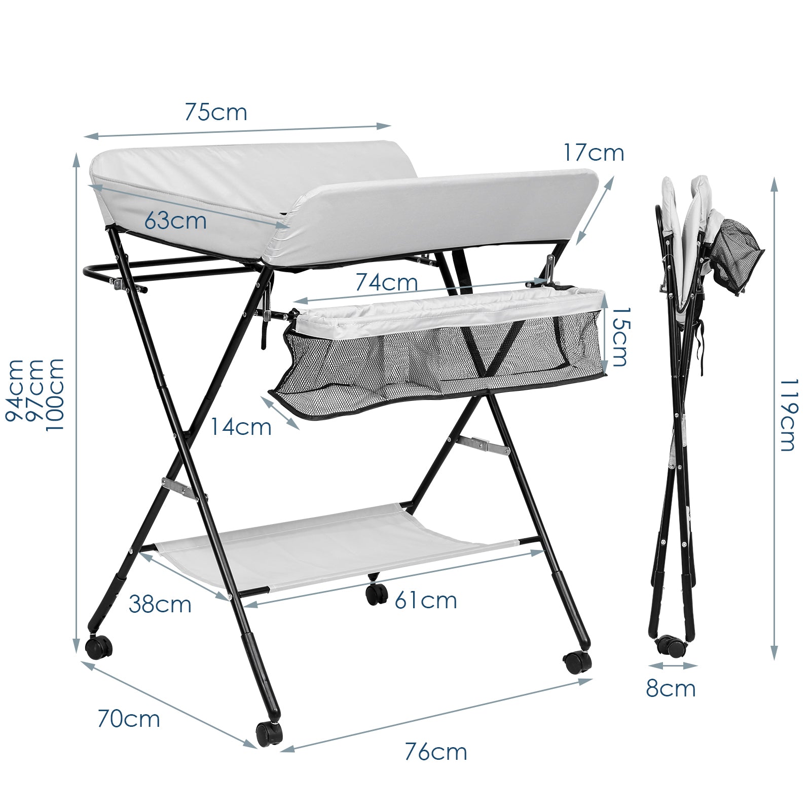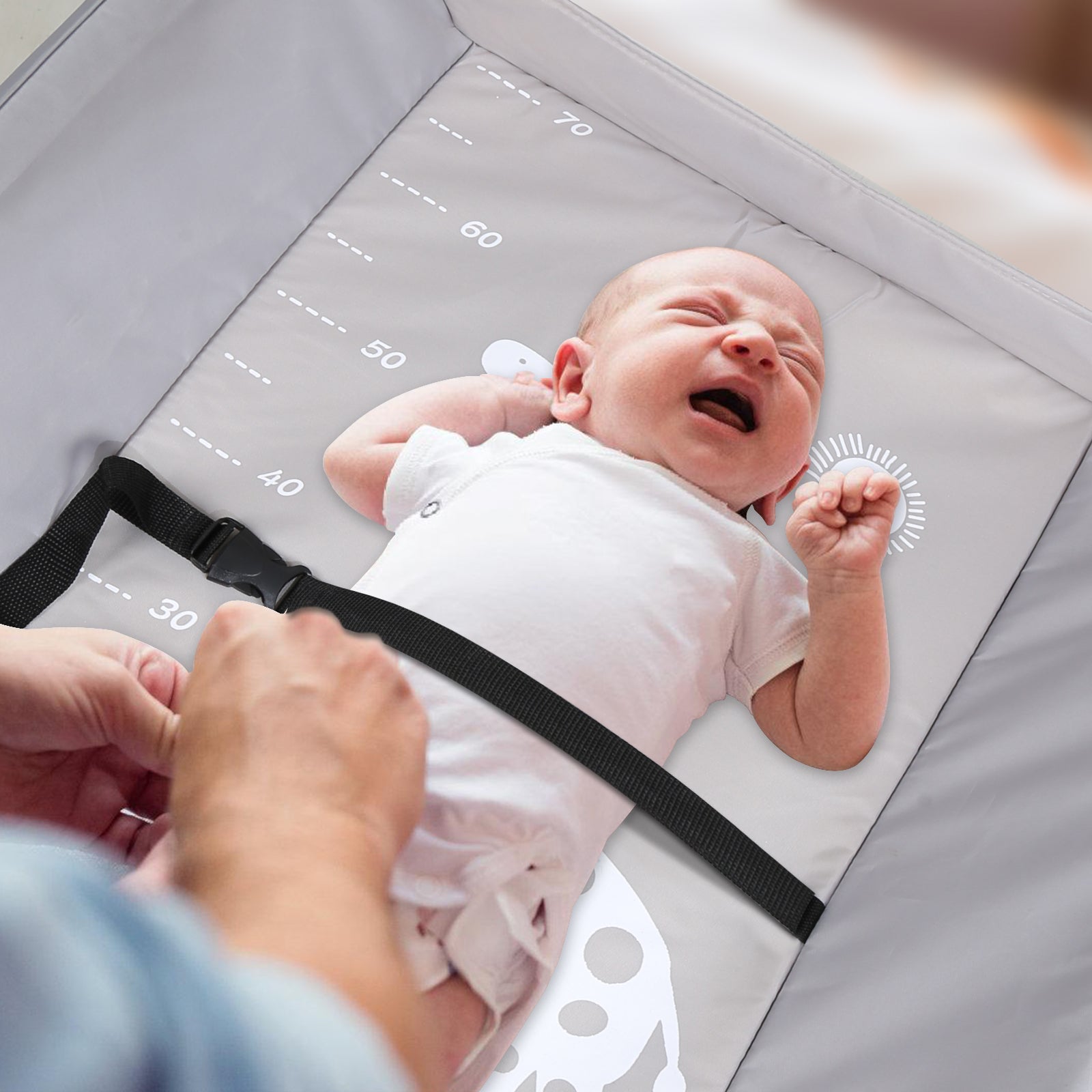 【 MULTIFUNKTIONALER BABY WICKELTISCH 】Dieser vielseitige baby Wickeltisch ist eine professionelle Wickelplatte zum Windeln oder zum Wechseln der Kleidung für Babys. Er ist in der passenden Höhe entworfen, wobei diese ebenfalls verstellt werden kann, wodurch dieser Tisch verhindert, dass Ihr Rücken vom Hinunterbeugen schmerzt. Zusätzlich hilft die Skala auf der Tischoberfläche dabei, die Größe des Babys praktisch zu messen.