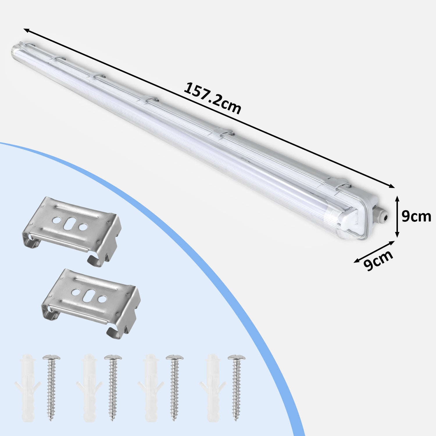 [120cm LED Feuchtraumleuchte] Die LED-Feuchtraumleuchte mit 24W und 2400 Lumen bietet ein gleichmäßiges, klares und flimmerfreies kaltweißes Licht. Die LED-Wannenleuchte ist Staubdicht, stoßfest und wasserdicht. Nicht dimmbar, 6500K.