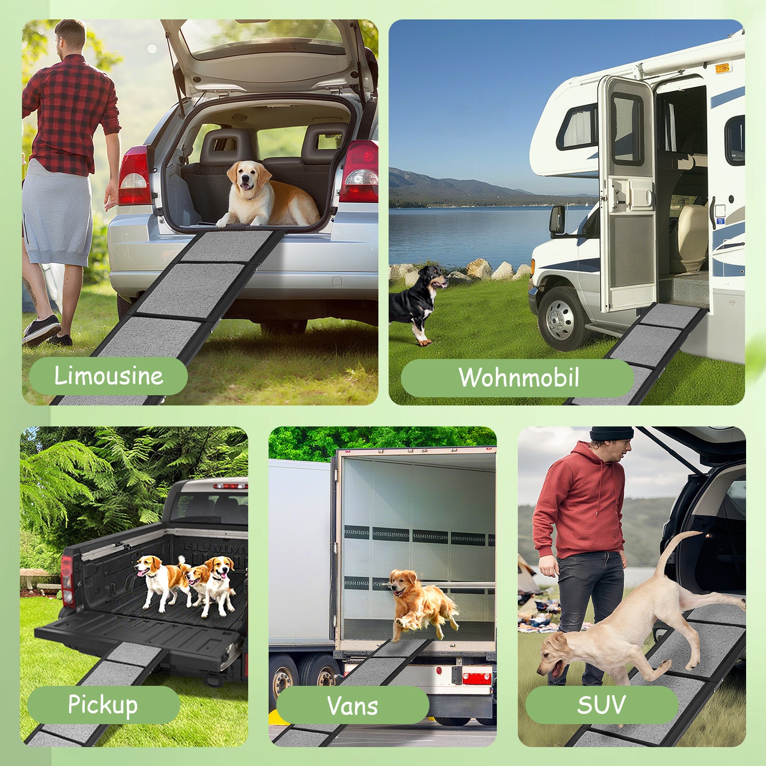 Diese tragbare Hunderampe eignet sich für SUVs, Wohnmobile, LKWs und mehr.