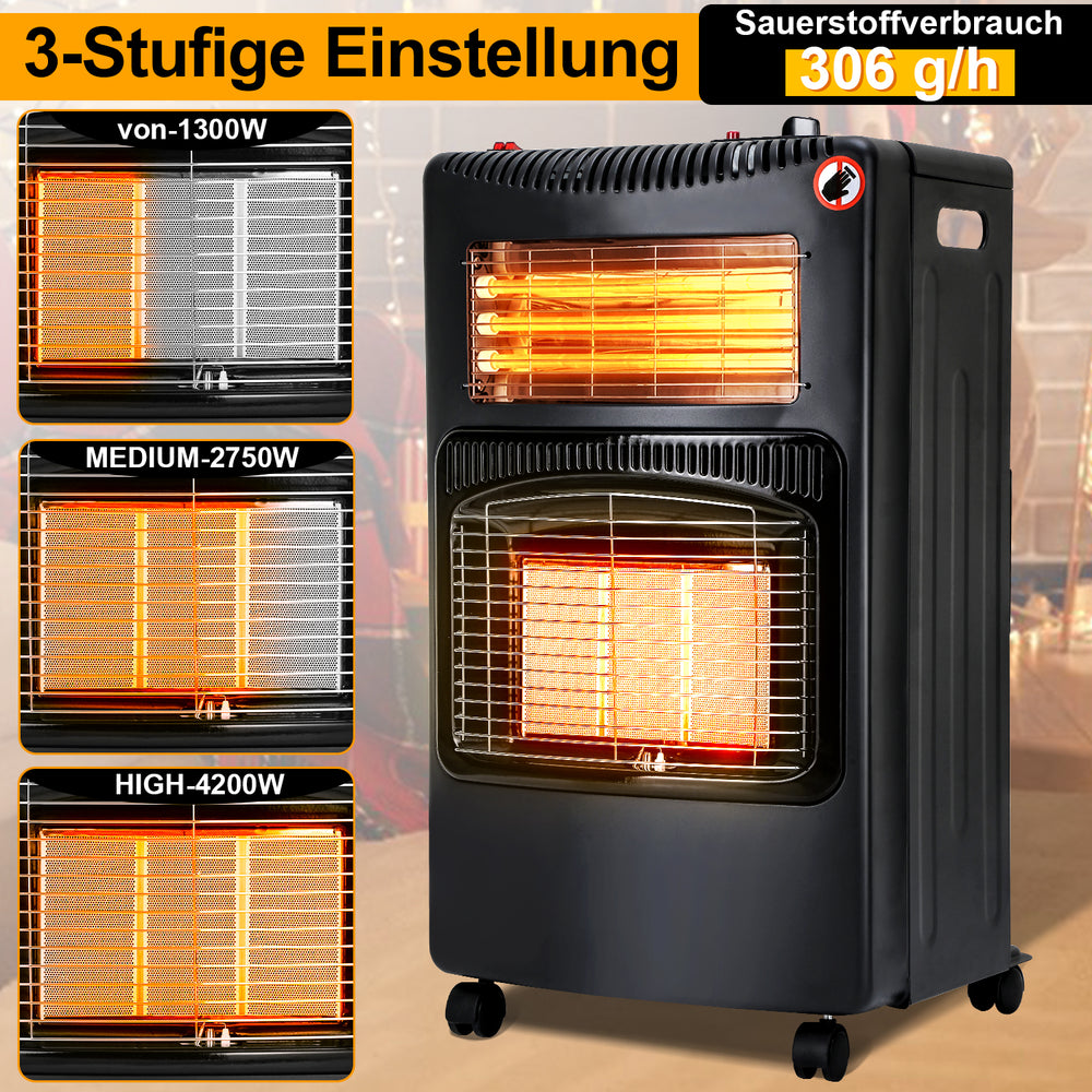 Sonnewelt Gasheizer 4200W und 1260W Elektrische Gasheizgerät mit Druckminderer