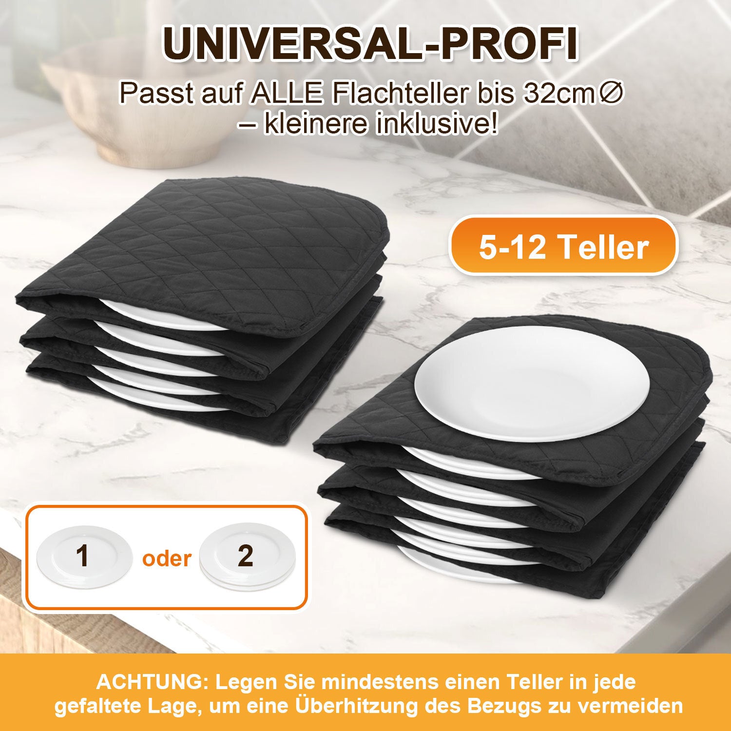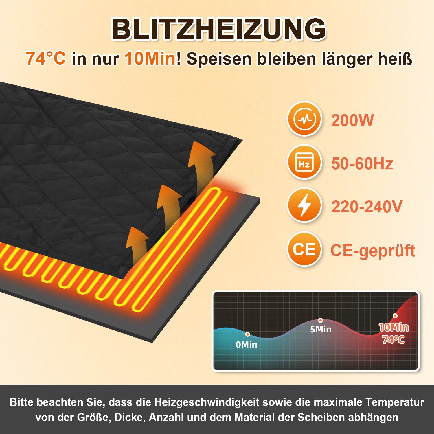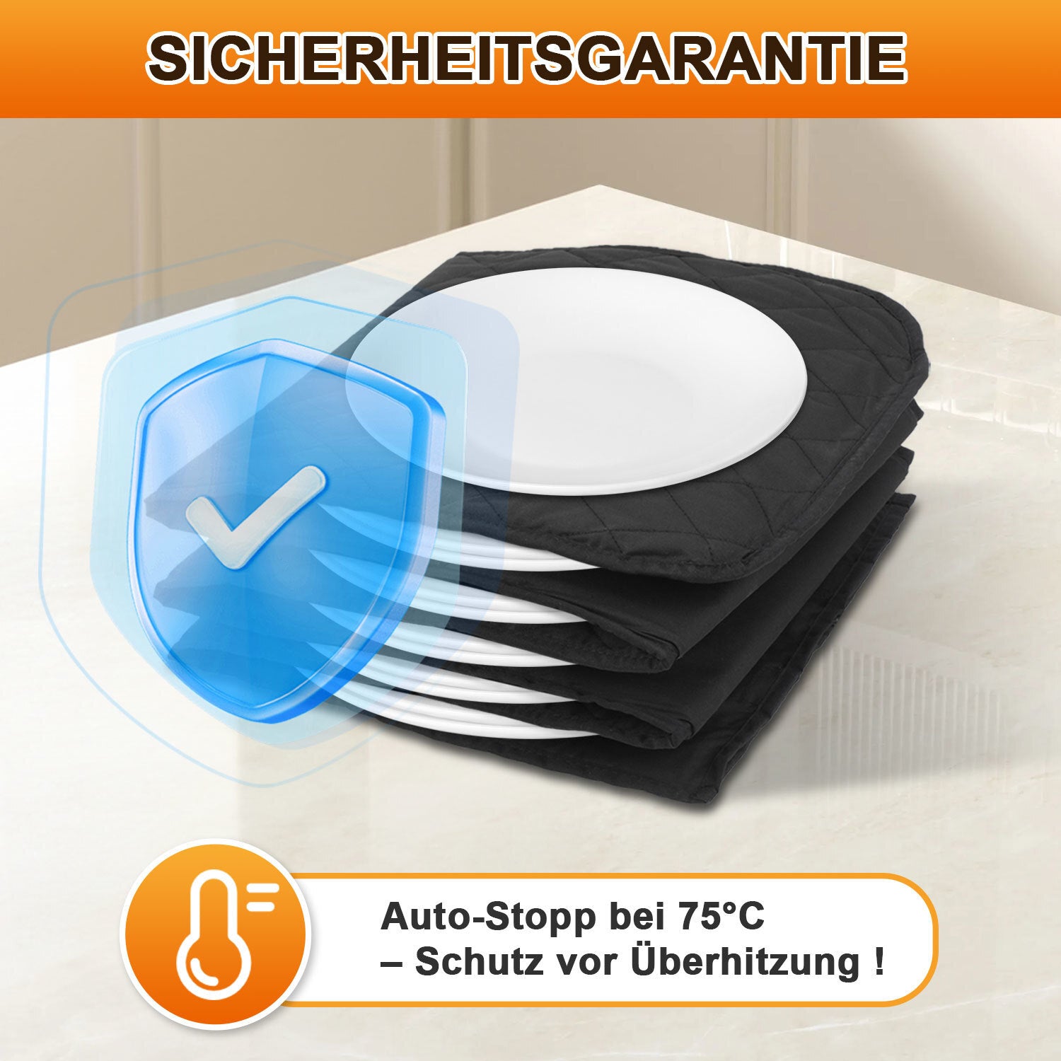 Tellerwärmer Elektrischer XXL für 12 Teller (bis 32cm) - 200W– 74 °C, waschbarer Bezug, schnelle Erwärmung in 10 Min.