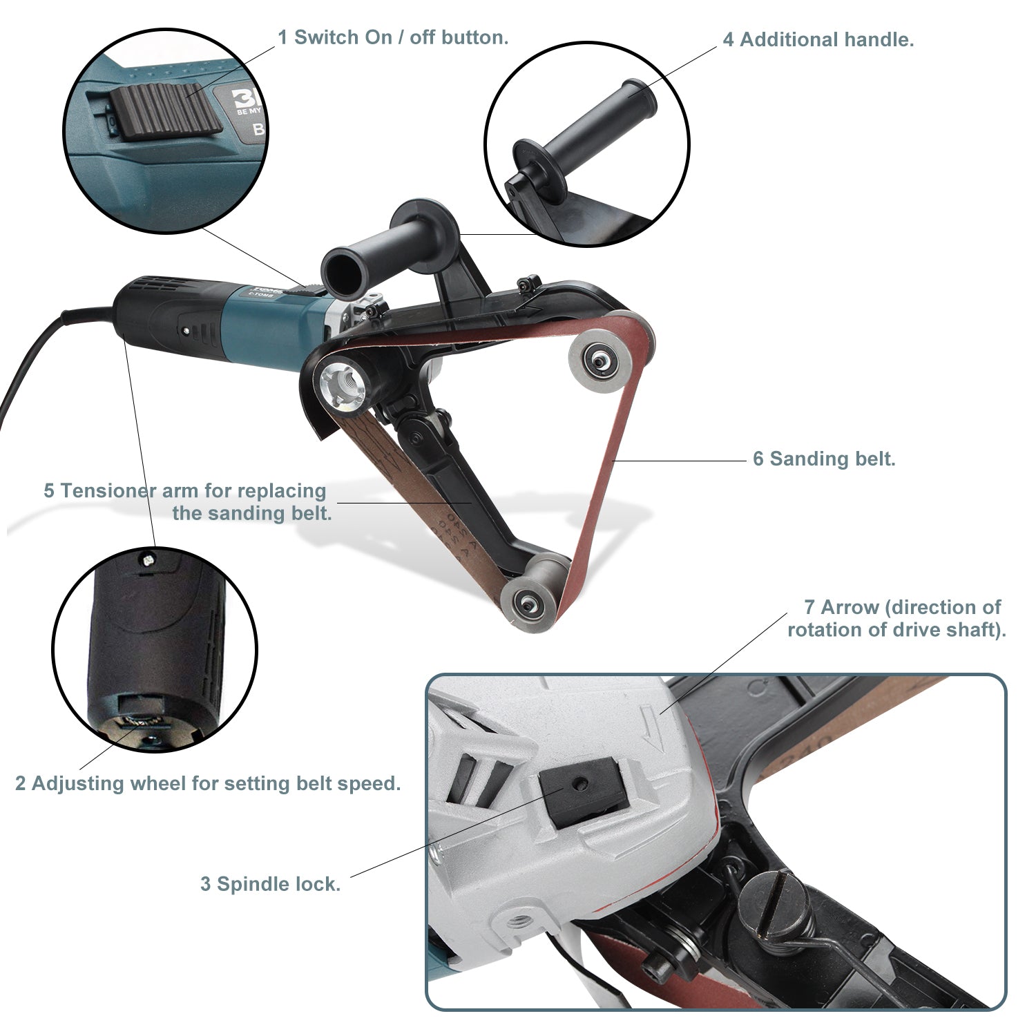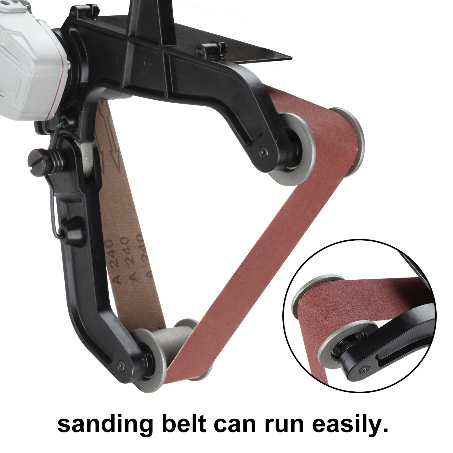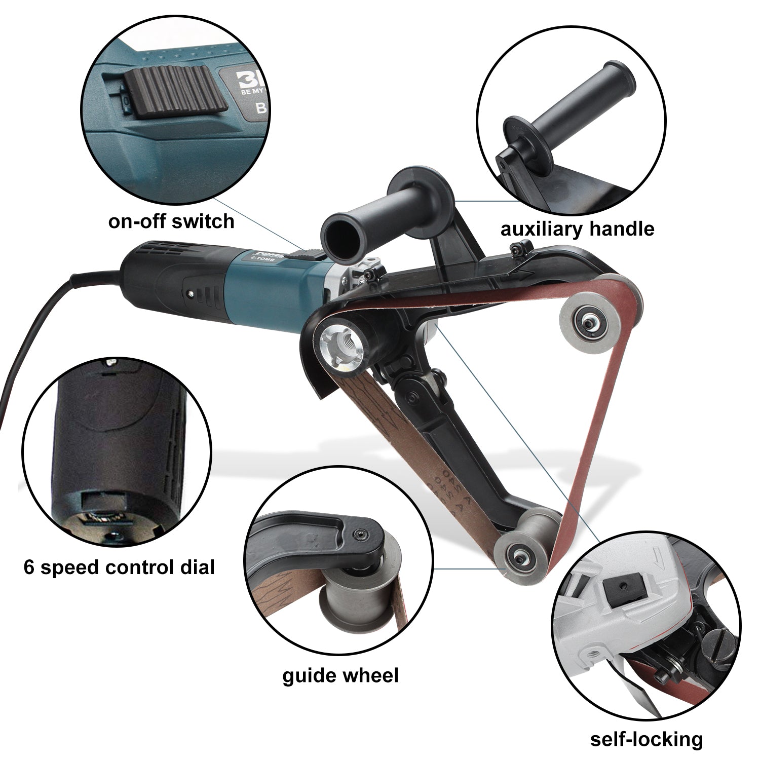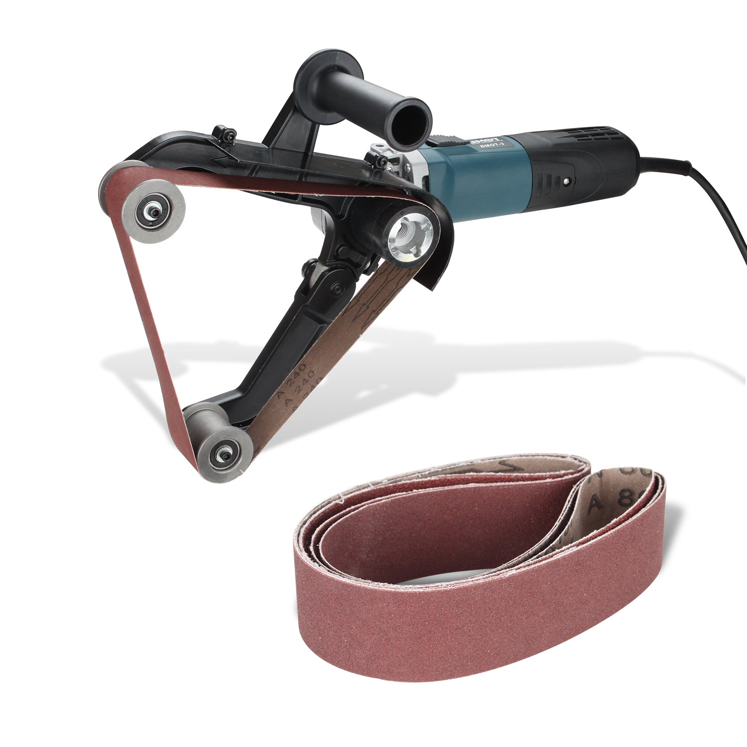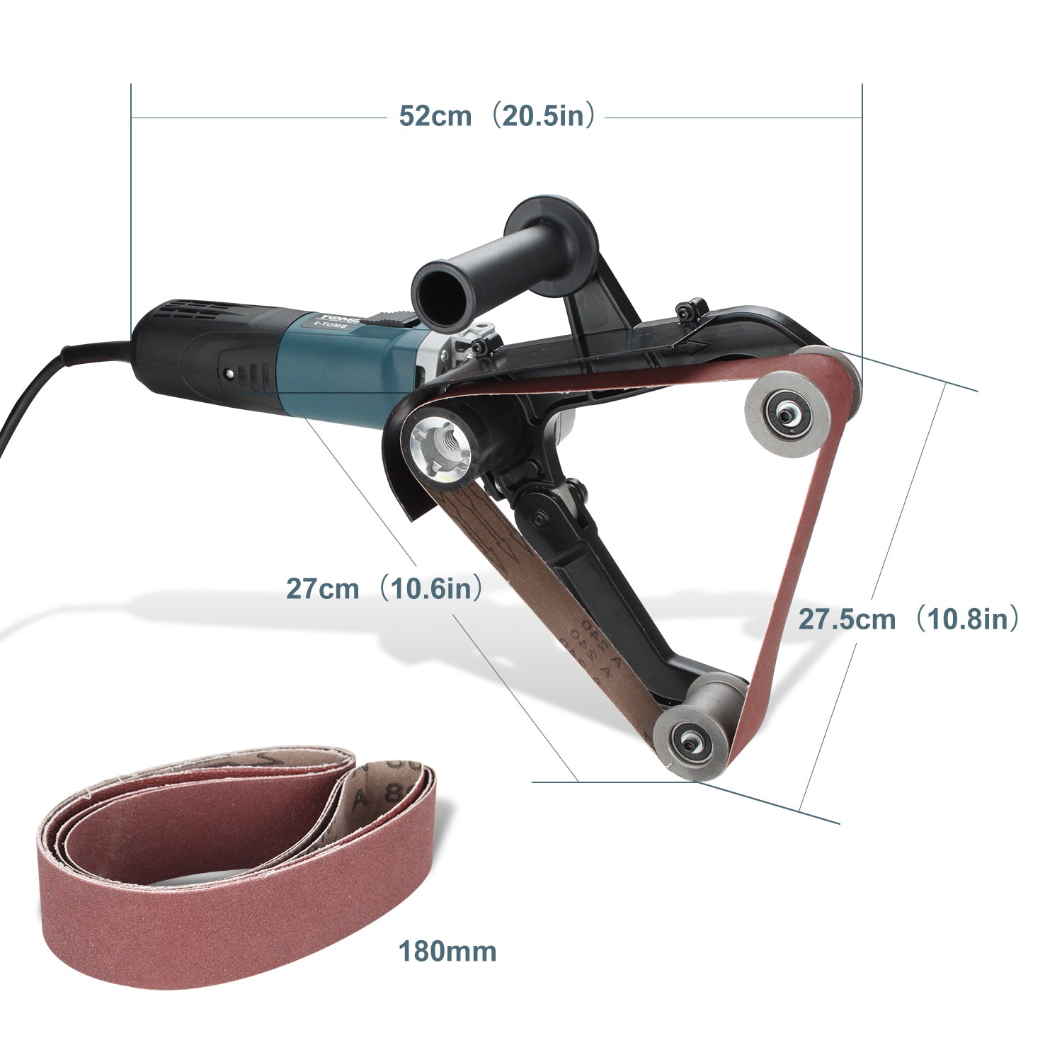 【Breite Anwendung】270° Schleifen, großflächig, leicht zu schleifen. Rohrbandschleifer weit verbreitet zum Polieren, Drahtziehen, Schweißen, Entrosten, Endbearbeiten und Nachbearbeiten von Edelstahl, Stahl, Buntmetallen, Kunststoffen und Holz.