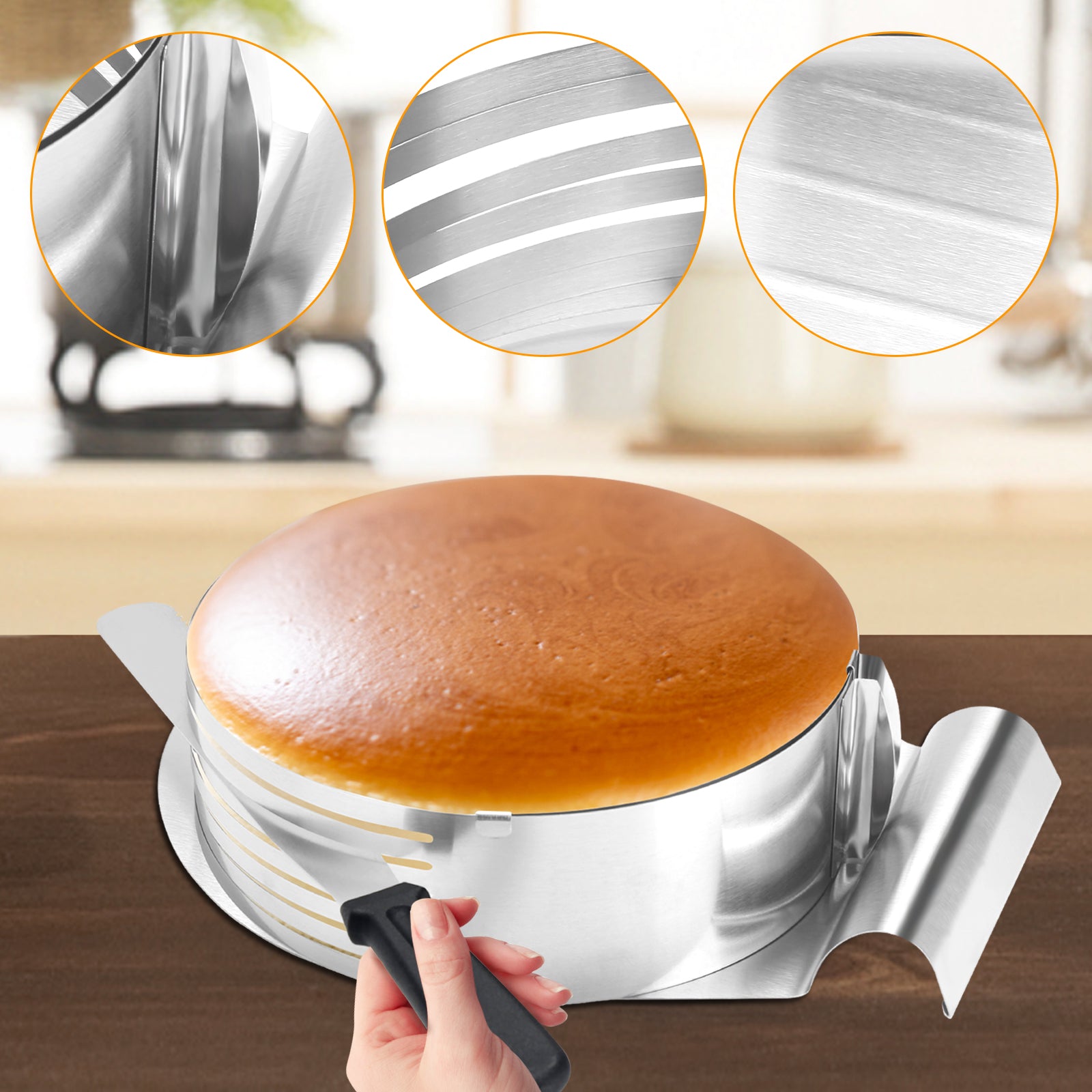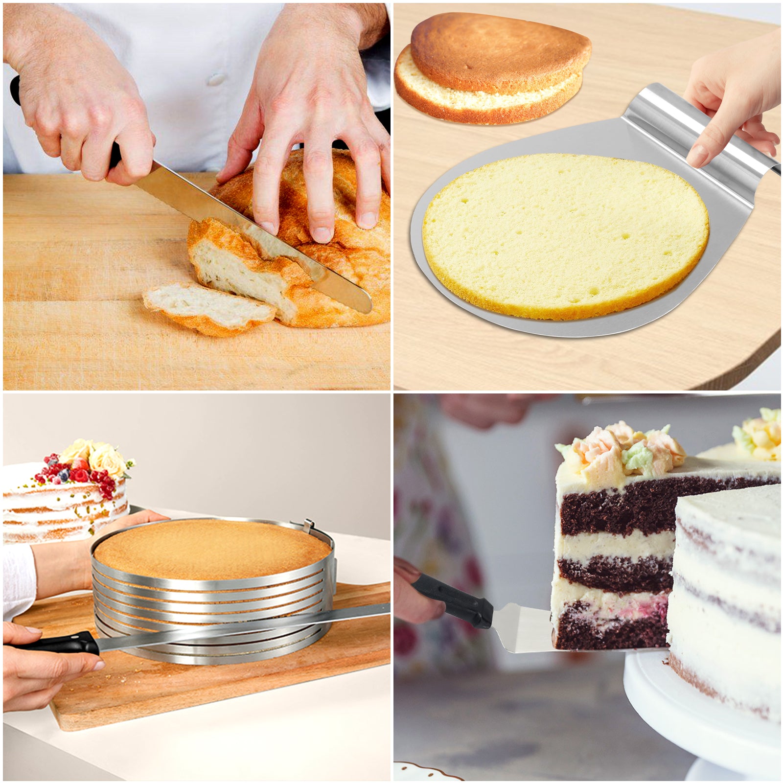 Die beste Tortenset-Kombination: Die Tortenboden Schneidehilfe enthält 2 Tortenmesser, einen Tortenring und eine Tortenplatte, die Ihr Backen angenehmer machen können.