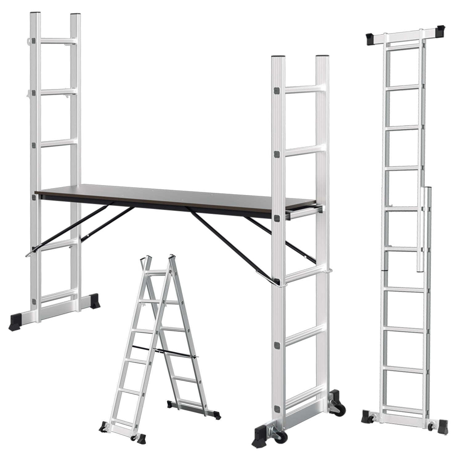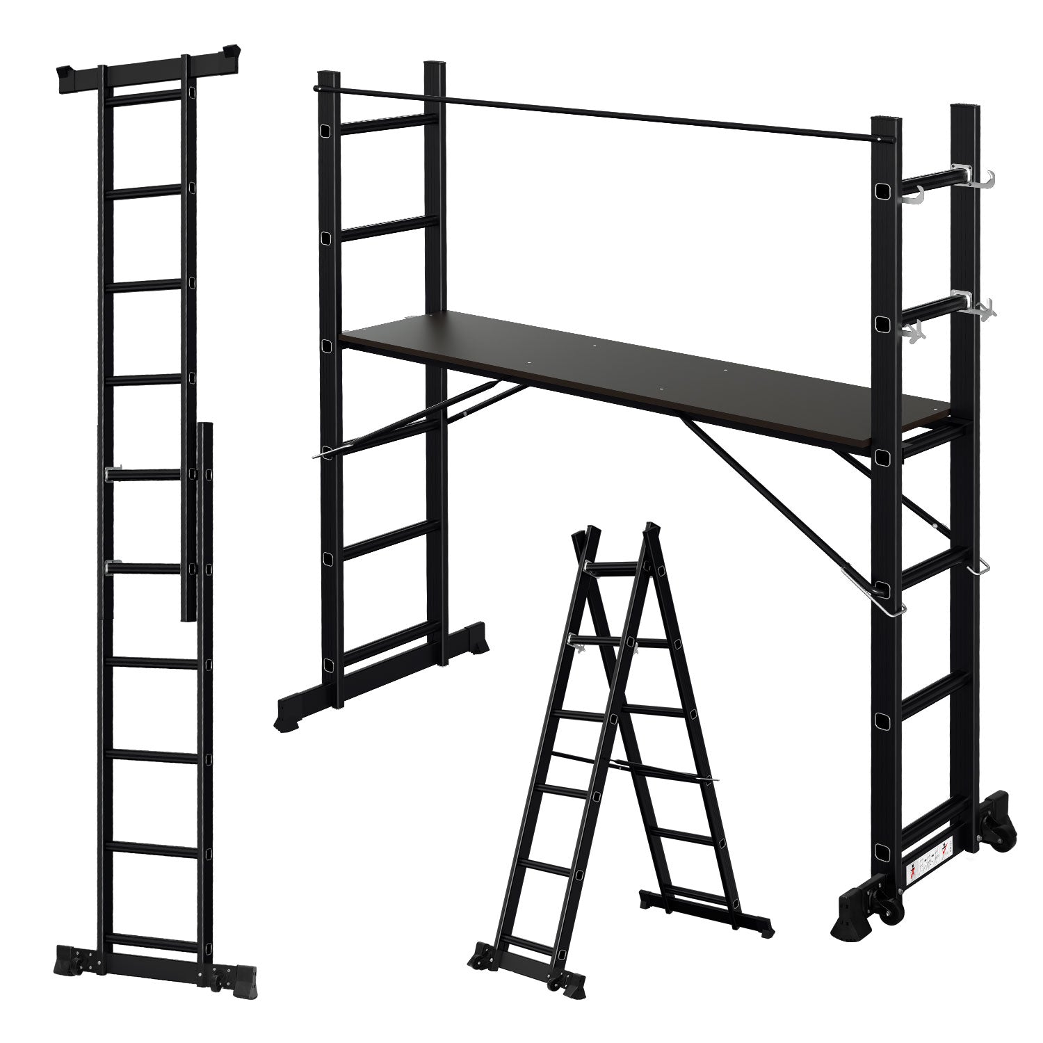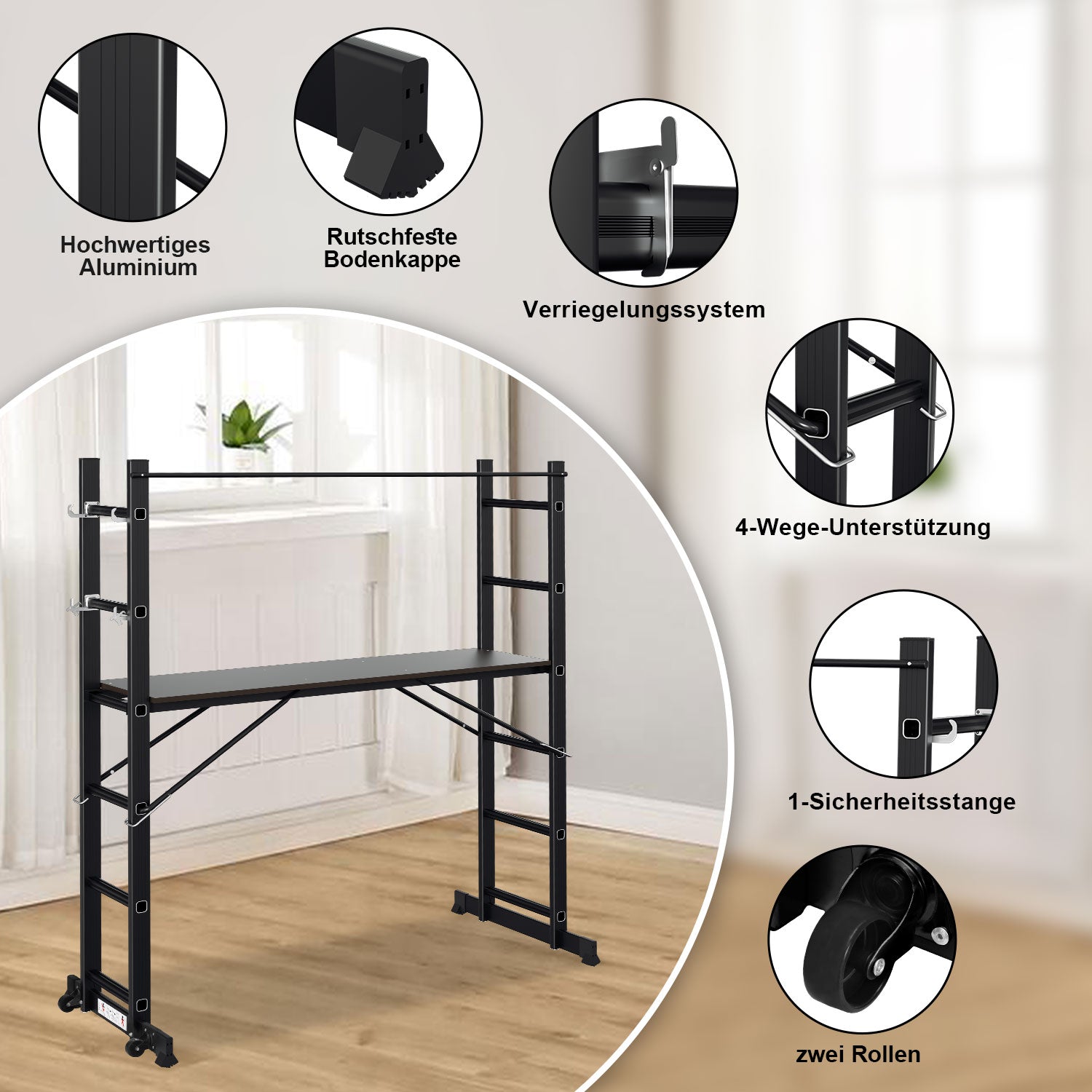 【Praktisch】Unser Gerüst ist nicht nur ausziehbar und höhenverstellbar, sondern kann auch zusammengelegt und platzsparend gelagert werden. Das Gerüst ist das perfekte Heimwerker-Gerüst. Diese universale Aluminium Mehrzweckleiter ist ideal für Arbeiten rund um Haus, Garten oder Werkstatt.