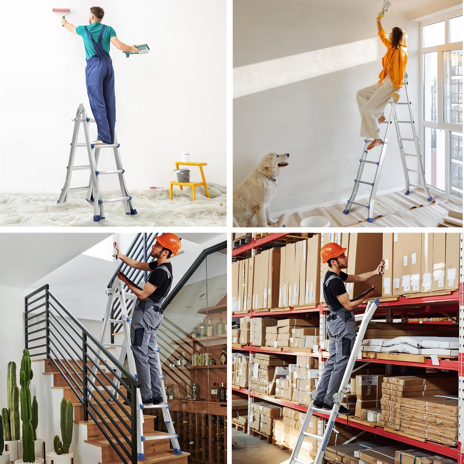 Multifunktionsleiter Alu: Diese 3-in-1-Multifunktionsleiter kann als Stehleiter, Anlegeleiter oder Treppenleiter verwendet werden, wodurch sie äußerst flexibel und vielseitig einsetzbar ist.