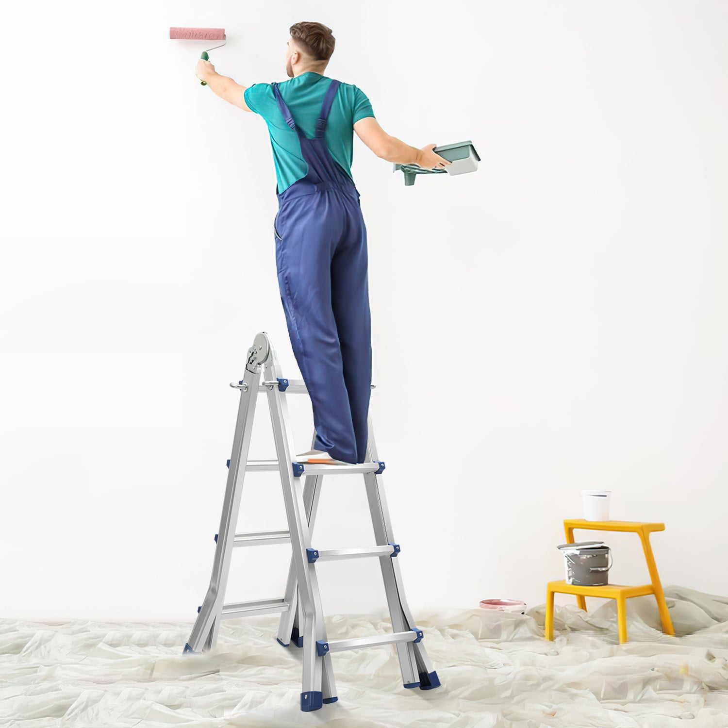 Vielfach einsetzbar:Ganz gleich, ob Sie hoch hinaus müssen oder niedrigere Arbeiten erledigen möchten, diese Leiter bietet Ihnen die nötige Flexibilität. Egal, ob Sie Fenster reinigen, Fassadenarbeiten erledigen oder tapezieren möchten, diese Leiter wird Ihnen dabei helfen, Ihre Aufgaben sicher und effizient zu erledigen.