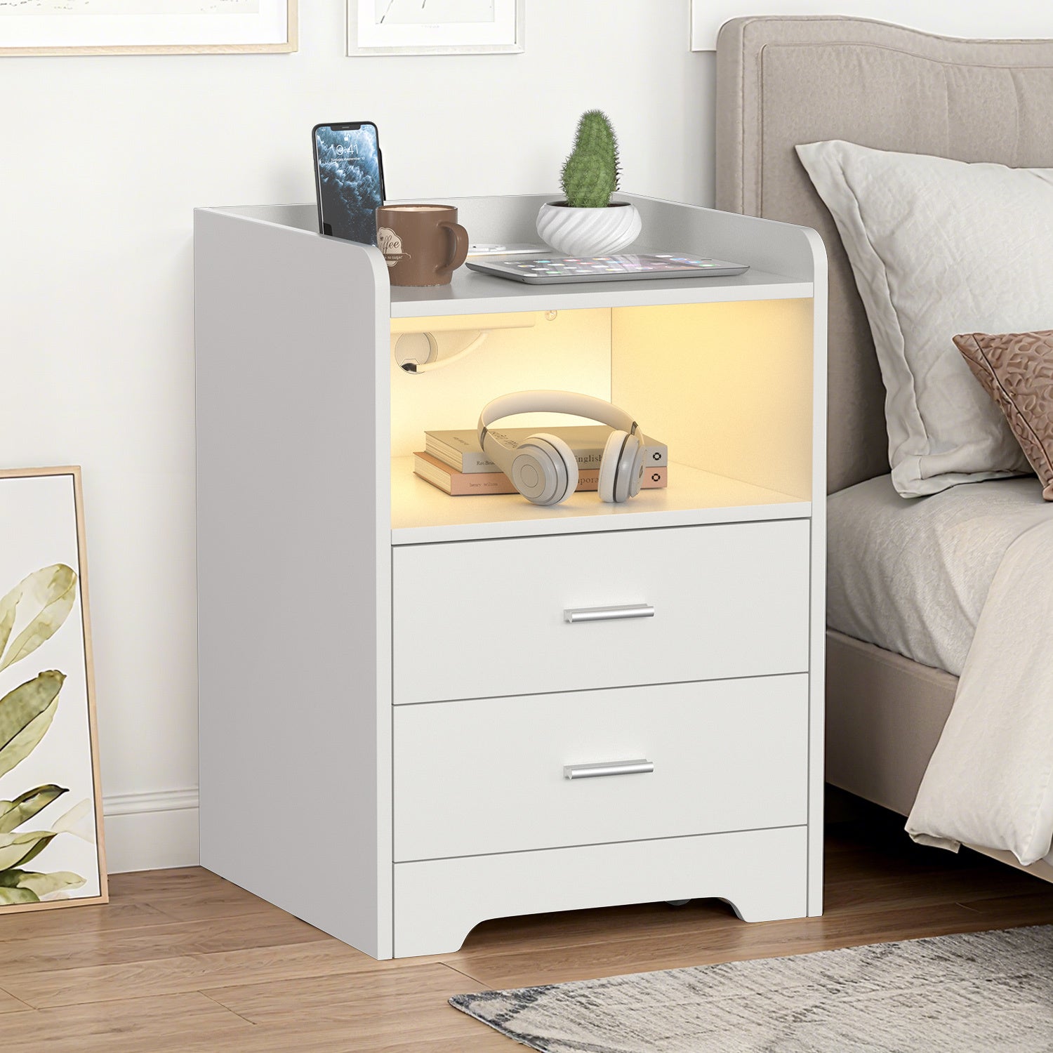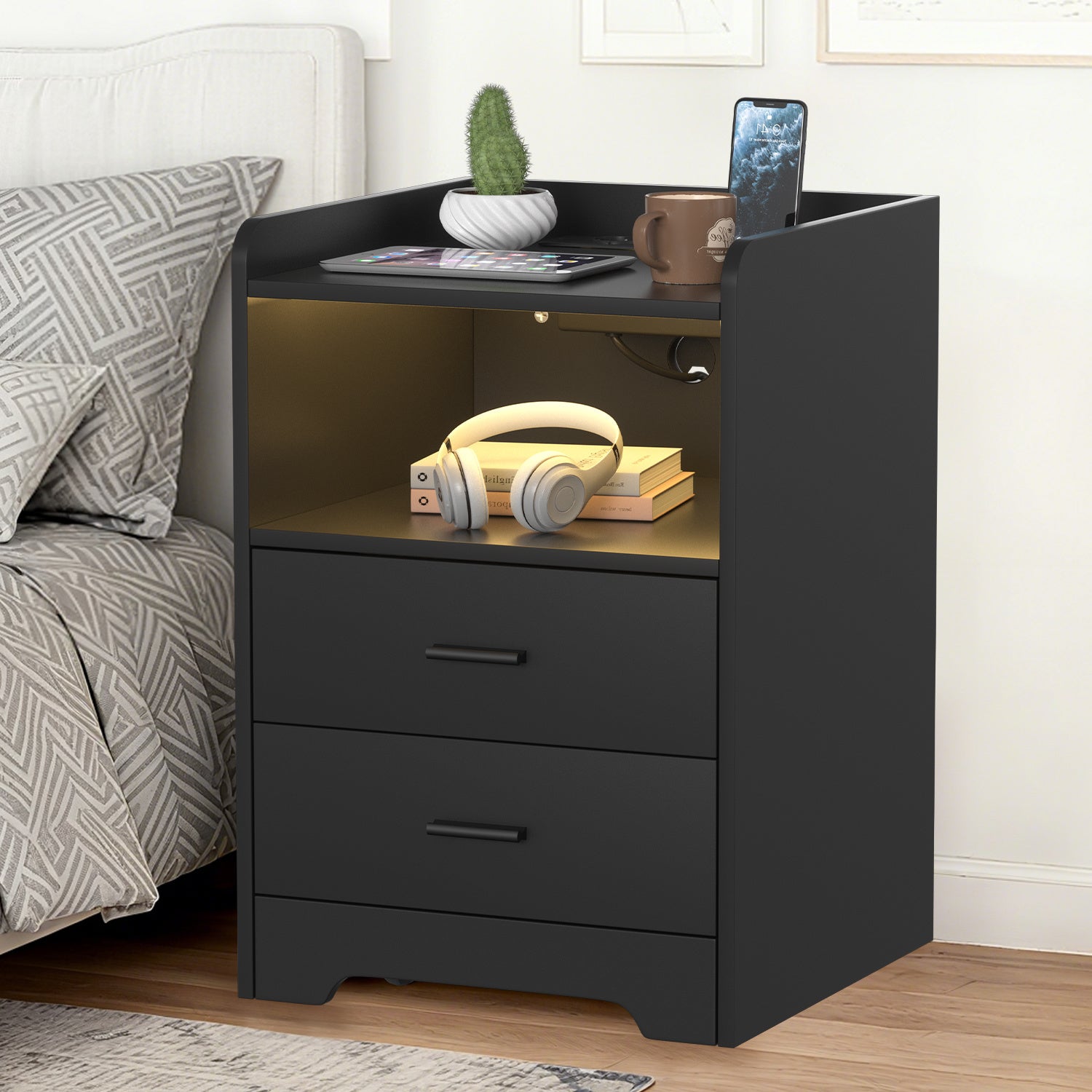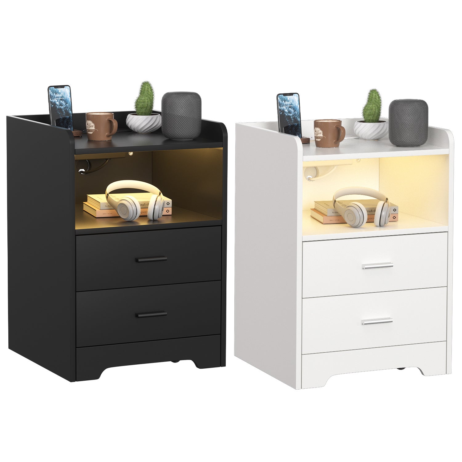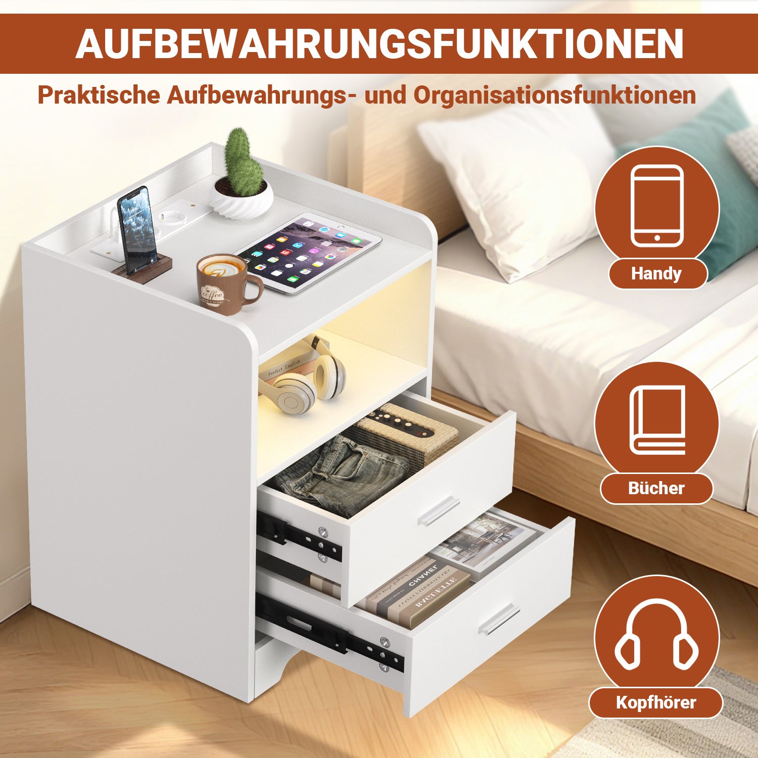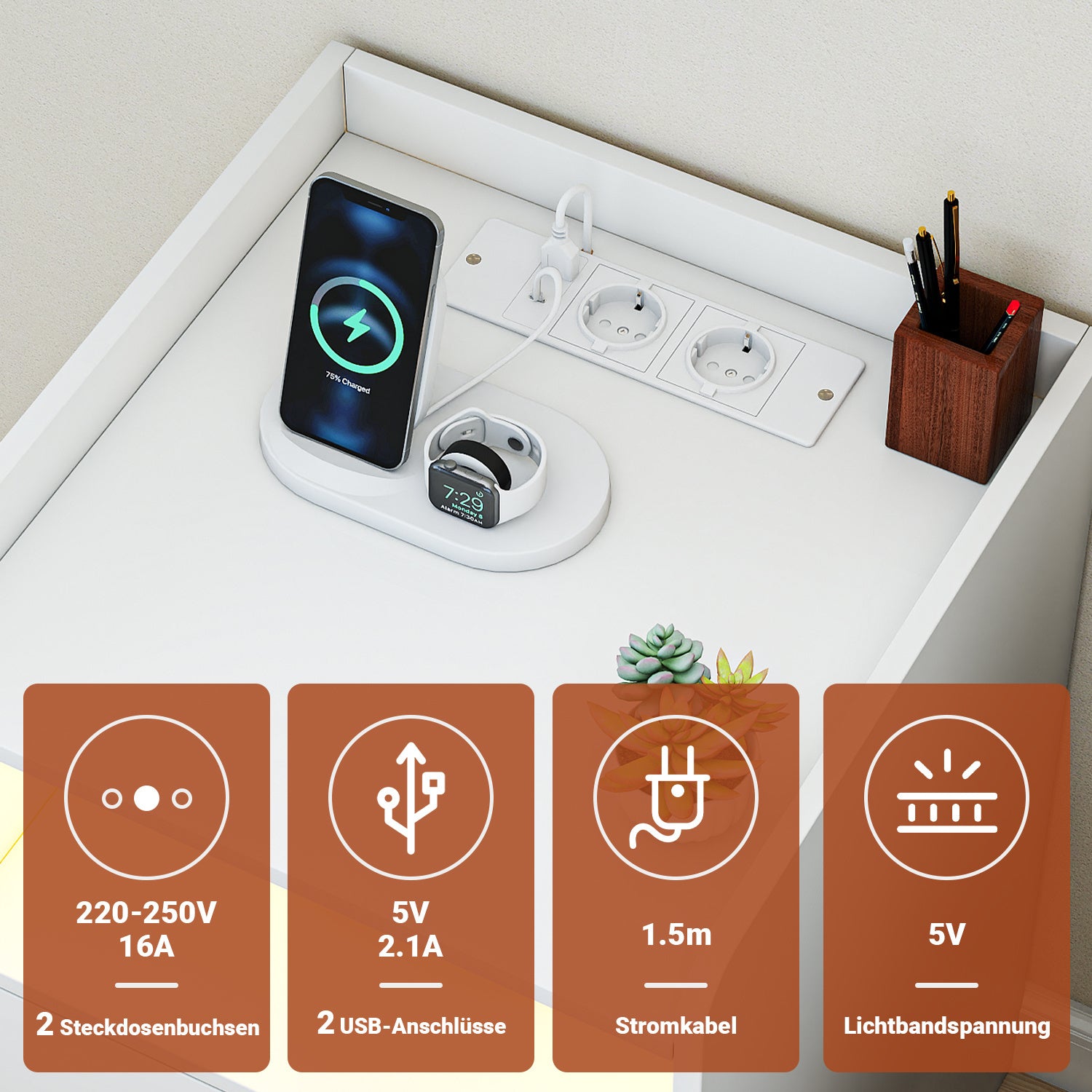 【PRAKTISCHE LADESTATION】Der Nachttisch ist mit 2 Steckdosen und 2 USB-Anschlüssen ausgestattet und kann Ihr Smartphone, Tablet, Ihre Nachttischlampe und Ihr Laptop aufladen.