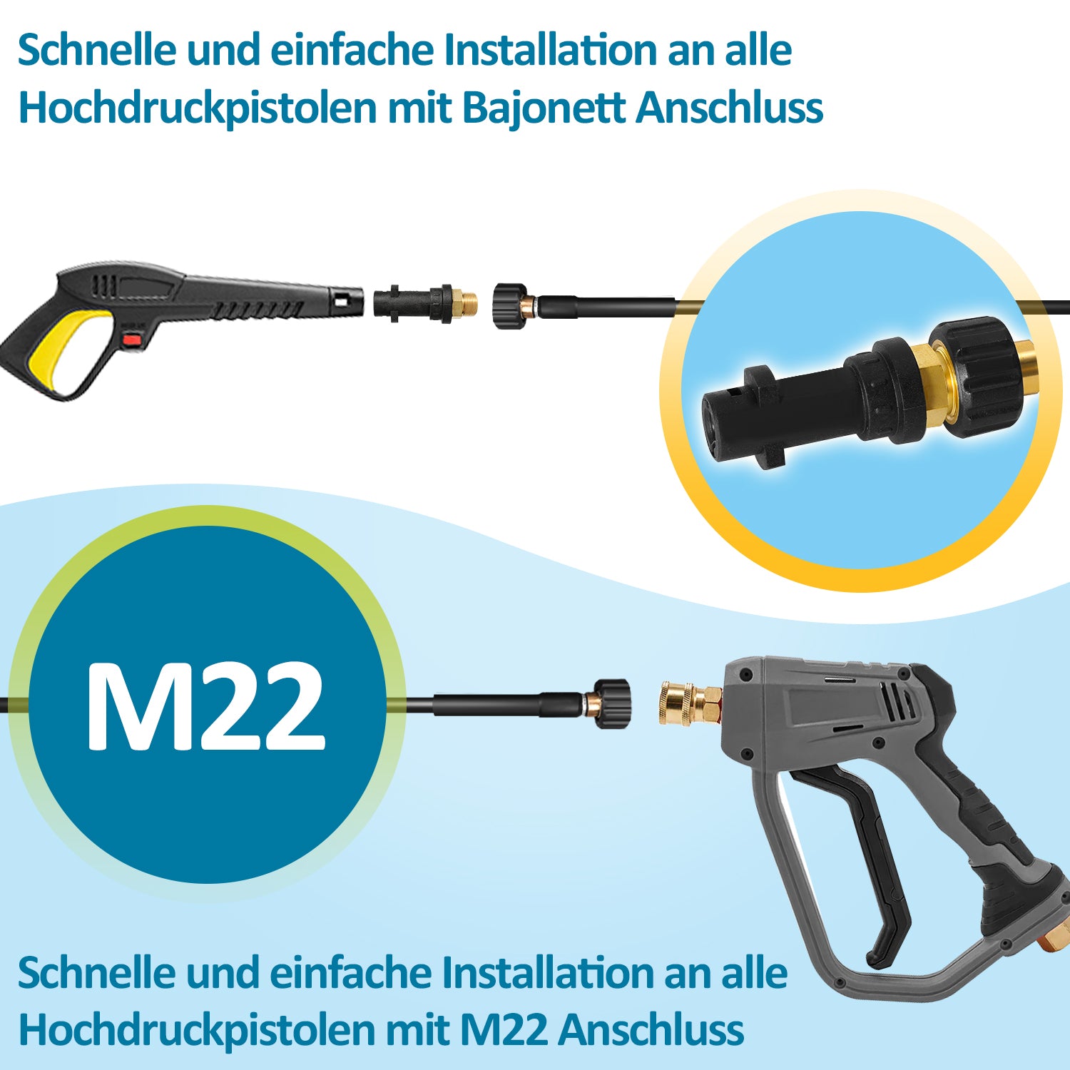 ●Rohrreinigungsset mit 2 Adaptern ausgestattet, kompatibel für Karcher K2/K3/K4/K5/K6/K7 und LAVOR, Bosch Hochdruckreinigern. Mit Starr Spritzdüse und Rotationsdüse ausgestattet, um verstopfte Rohre kraftvoll zu reinigen.