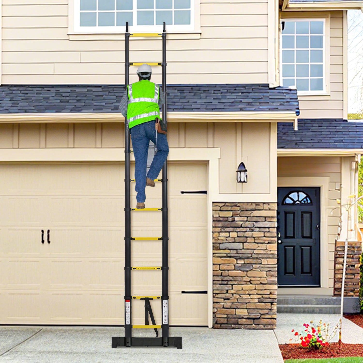 Sicher und Zuverlässig: Zwischen den Sprossen ist Finger Sicherheitseinstellungen vorhanden, um das Einklemmen der Finger beim Ein- und Ausfahren zu verhindern. Die rutschfesten Gummifüße und die abnehmbaren Haken machen die Teleskopleiter stabiler und bieten Ihnen maximale Sicherheit, wenn sie vollständig ausgezogen ist.
