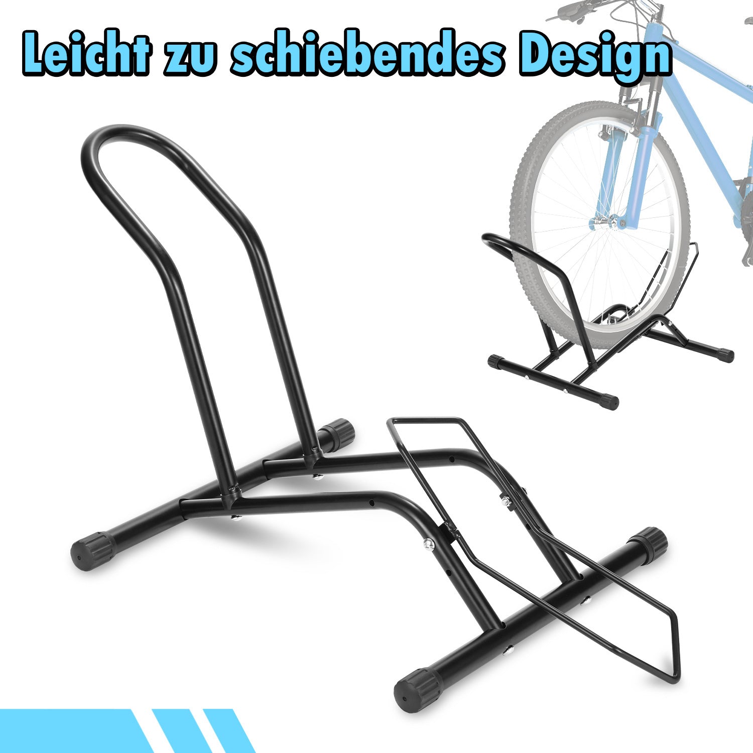 Rtschfest und Stabil: Der Fahrradständer besteht aus hochwertigen Stahlrohren gefertigt und zeichnet sich durch hohe Kratzfestigkeit und Witterungsbeständigkeit aus. Dank der gummierten Standfüße steht das Fahrrad sicher.