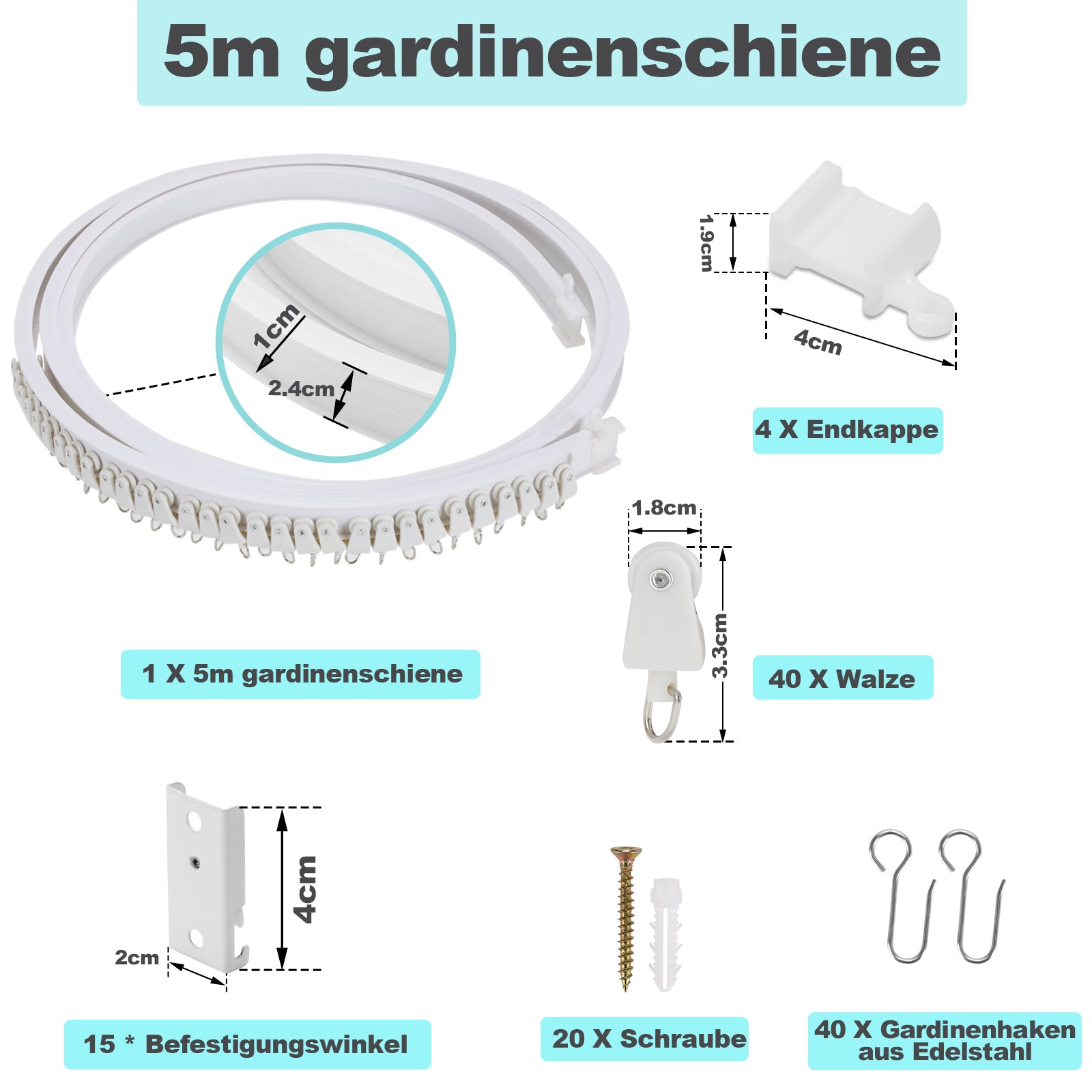 【Einfach zu installieren】Wir bieten ein komplettes Set von Zubehör für die einfache Installation von Deckenschiene.
