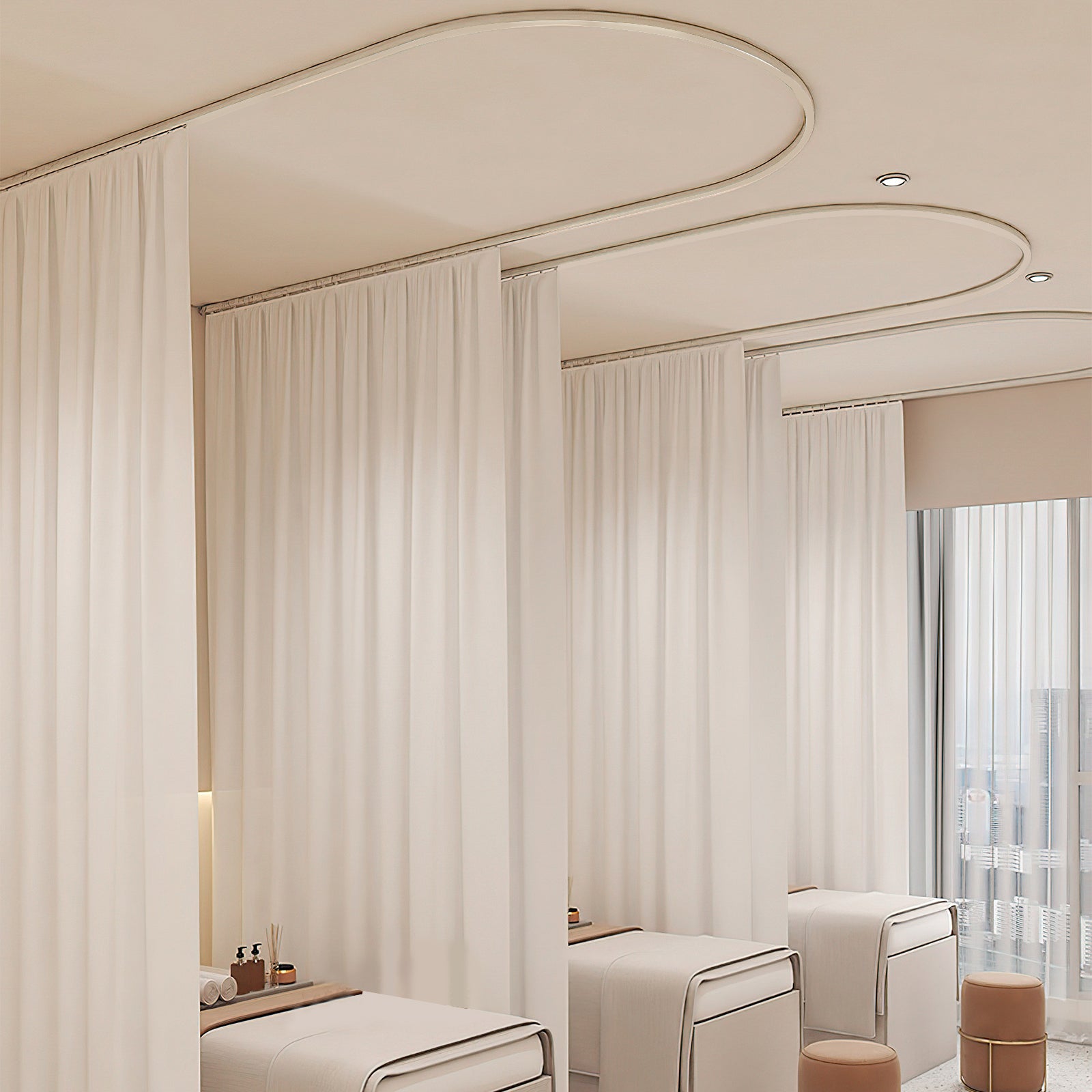 【Breites Einsatzspektrum】Deckenhalterung ist grundsätzlich für alle Formen von Raumfenstern geeignet,Gardinenschiene nicht nur für Raumteiler Vorhangschienensysteme, Betttrenner, Wandtrenner, sondern auch für Büros, Wohnwagen, Krankenhäuser, Kliniken, Bäder, Hotels.