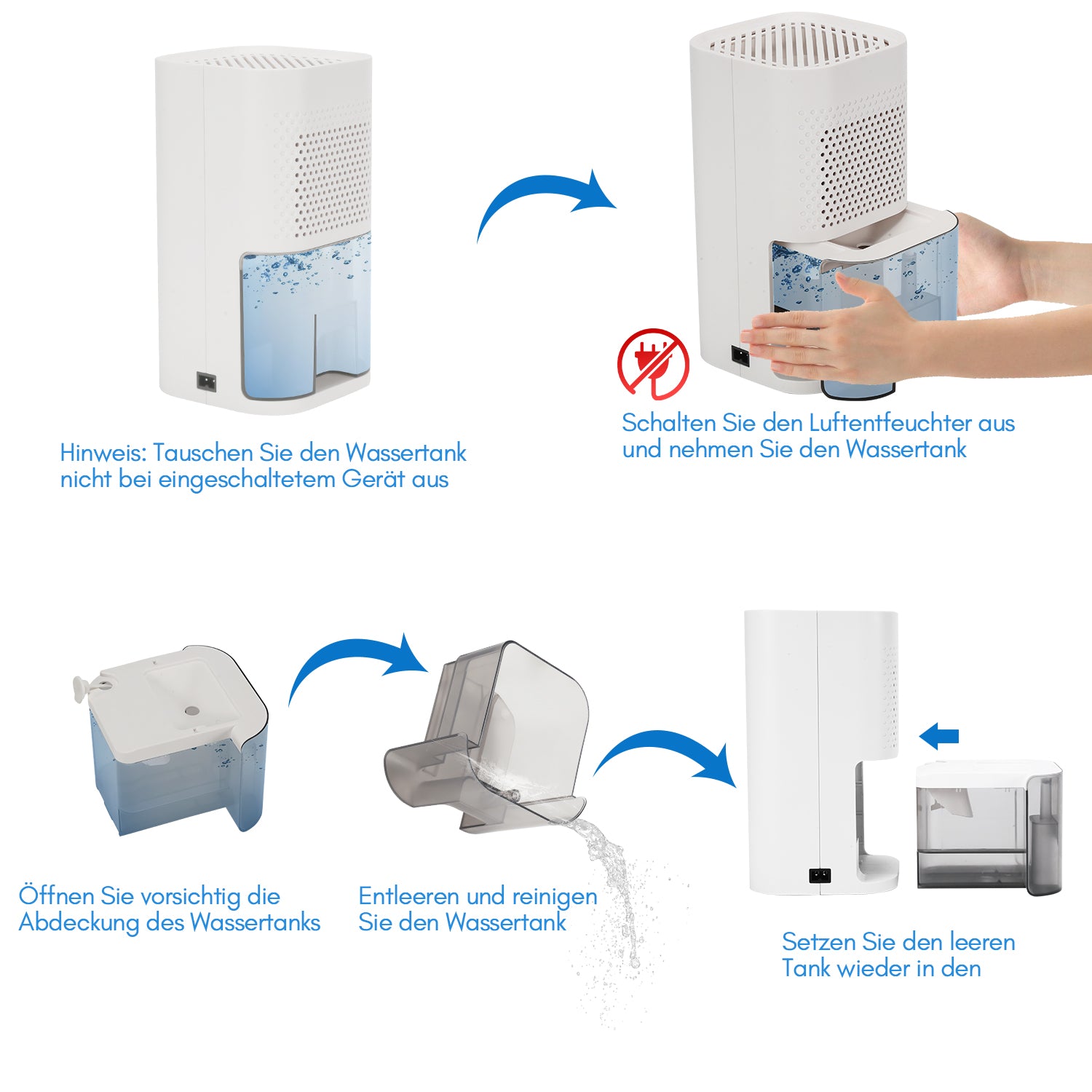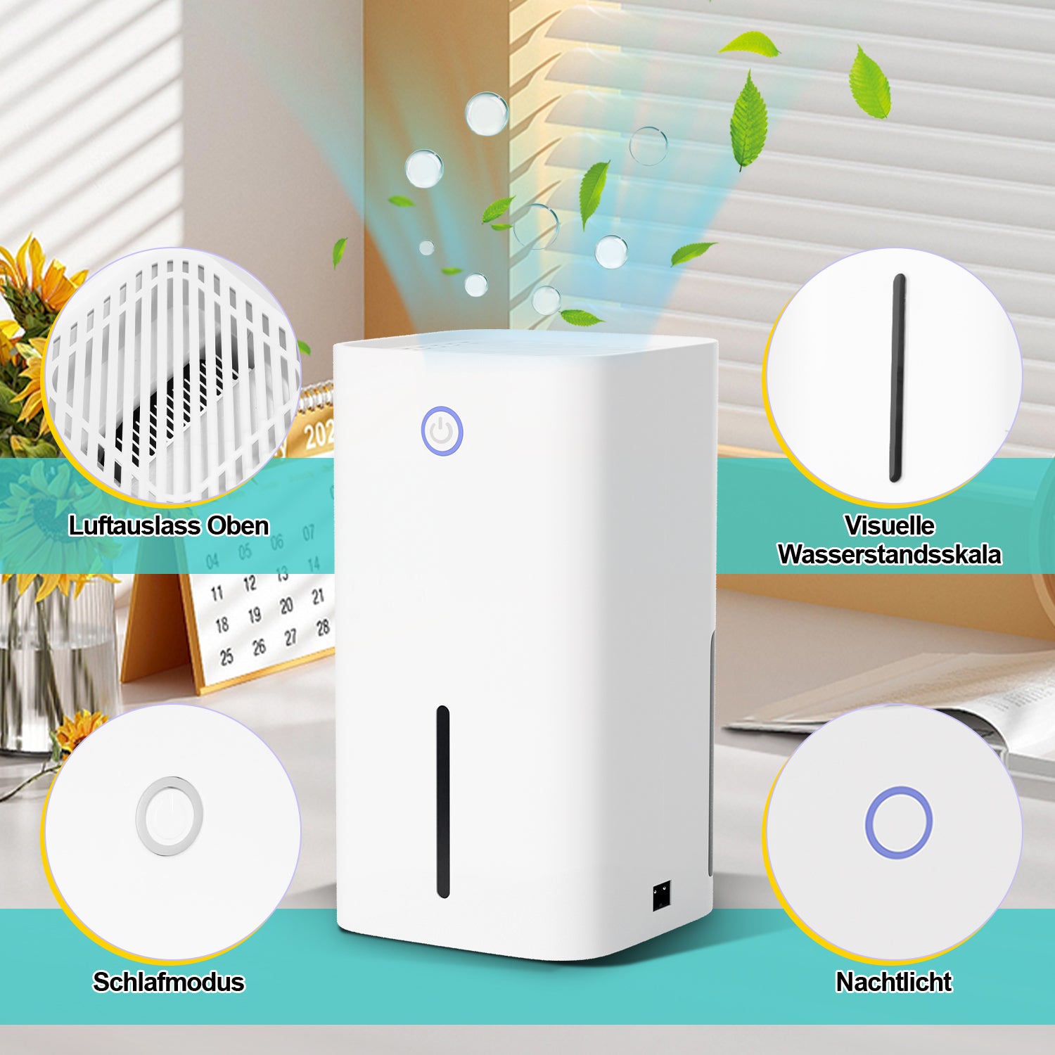 [Effizienter Luftentfeuchter] Dieser tragbare Mini Luftentfeuchter verfügt über einen 850-ml-Wassertank, der überschüssige Feuchtigkeit aus dem Raum aufnimmt und frische Luft abgibt, ohne dass diese klebrig oder übermäßig trocken wird. Es verlängert auch die Lebensdauer Ihrer Möbel. Sorgt für ein gesundes Arbeits- und Wohnumfeld.