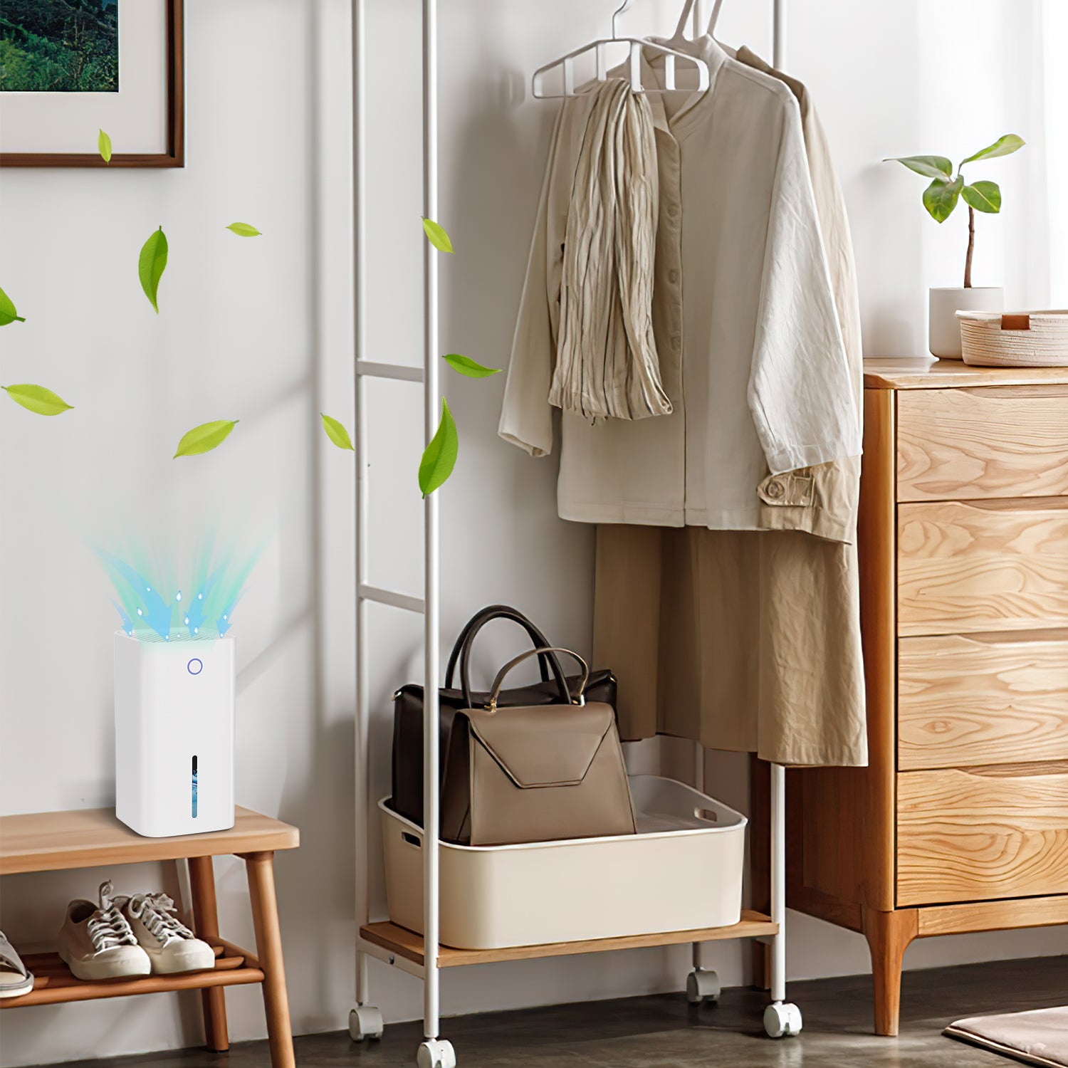 [Wichtige Verwendung] Der Mini-Lufttrockner entfernt Allergieauslöser wie Schimmelpilzsporen und Hausstaubmilben aus der Luft, was dazu beiträgt, die Luftqualität zu verbessern, die Beschwerden von Allergikern zu verringern, die Gesundheit zu schützen und Schimmel und Geruch an Wänden, Kleidung, Böden usw. zu verhindern.