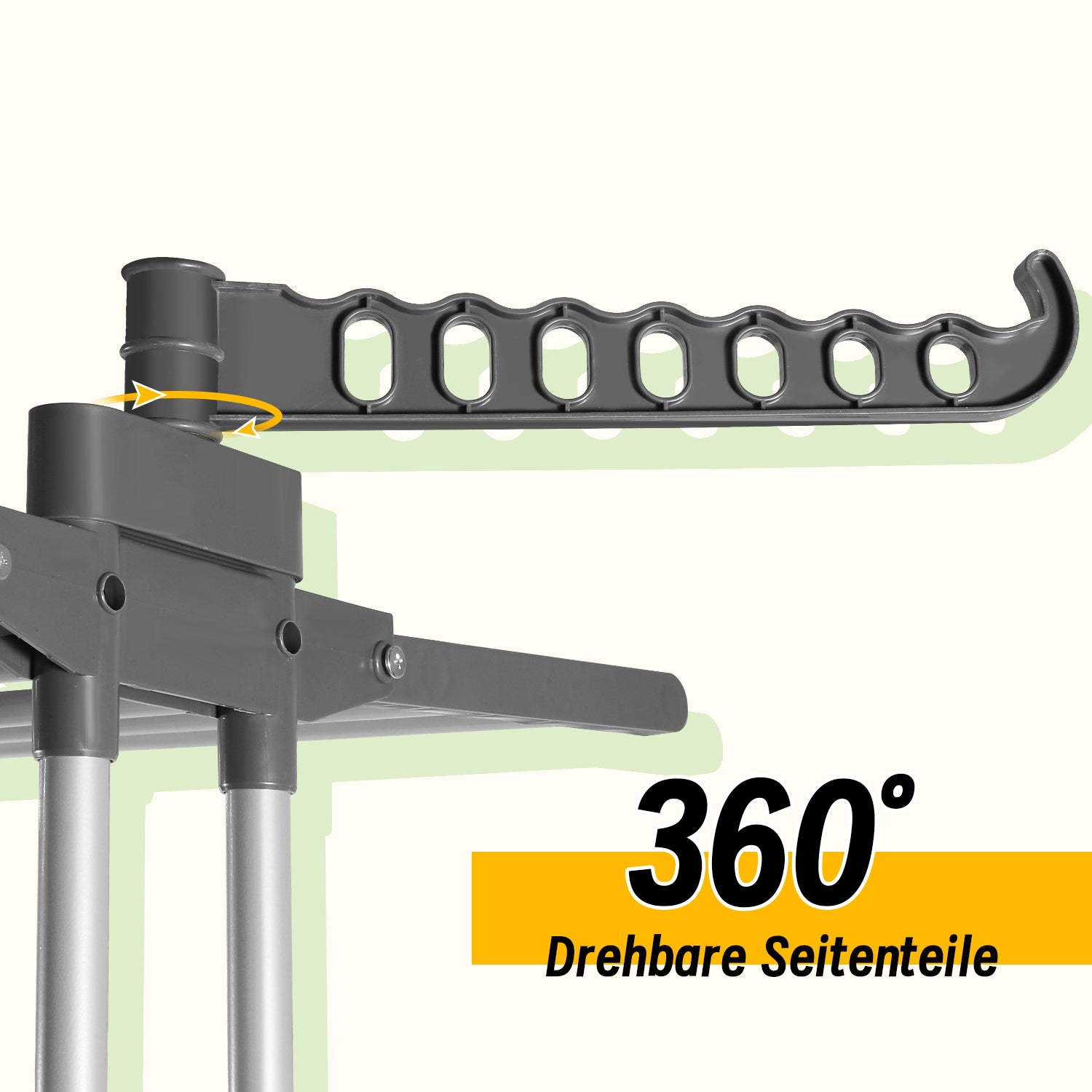 【360° drehbare Räder】 Sechs 360° drehbare Räder machen es einfach und bequem für Ihren Wäschetrockner, den Wäscheständer zu bewegen. Alle Räder haben eine Bremsfunktion, und Sie können die Räder sperren, um zu verhindern, dass der Wäscheständer rollt, was es sehr bequem macht, zu verwenden.