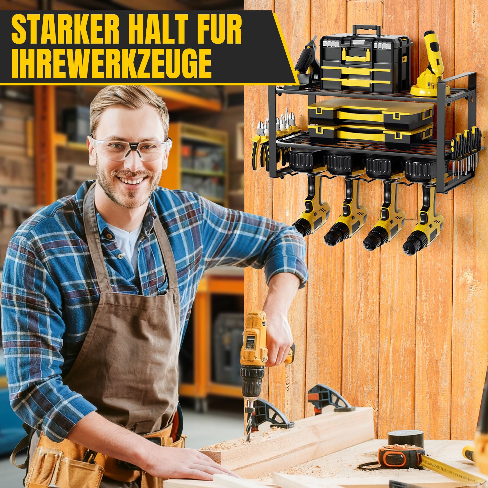 Hochwertige Materialien:Werkzeughalter aus robustem & Stahl, mit elektrostatischer Pulverbeschichtung für hervorragenden Schutz vor Feuchtigkeit und Korrosion. Unser Elektrowerkzeug-Organizer ist nicht nur langlebig, sondern auch stilvoll und kann mühelos bis zu 50 kg tragen.