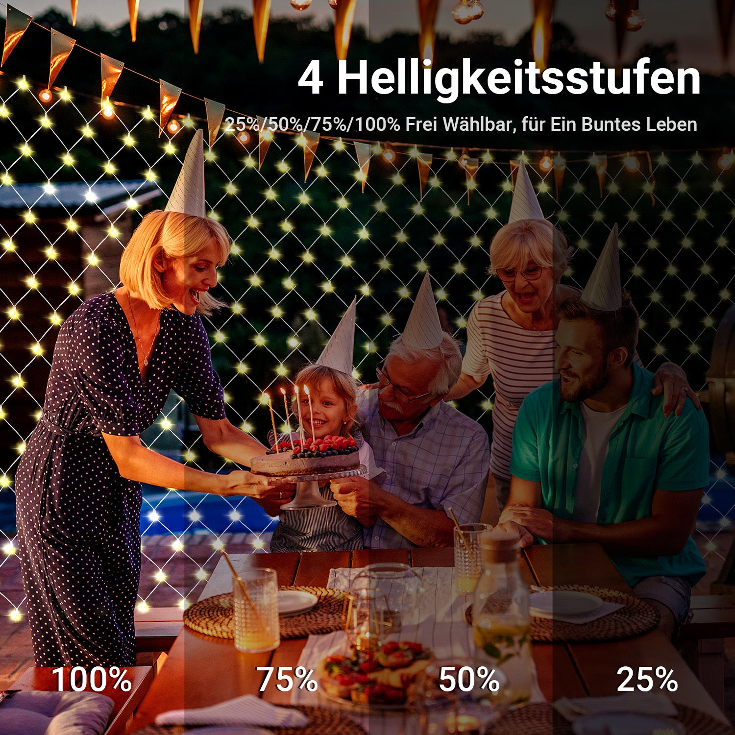 [Multifunctional light network]: The light network has a variety of functions, including 8 lighting modes, free switching, 4 levels of brightness (25%, 50%, 75%, 100%) free adjustment, 3 times (3/5/8 hours) timing function and memory function (can save settings before power failure, automatically restore the last settings next time).