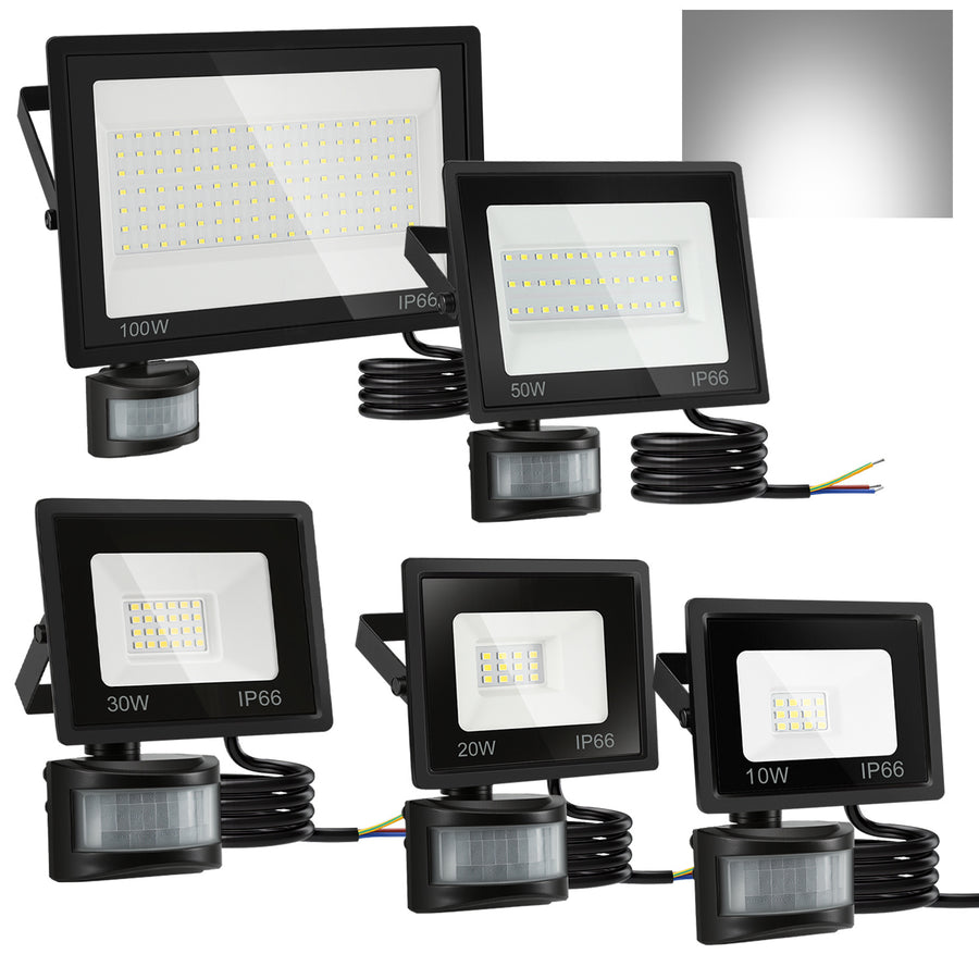Sonnewelt LED Fluter mit Bewegungsmelder Kaltweiß 10W-100W(kein Stecker)
