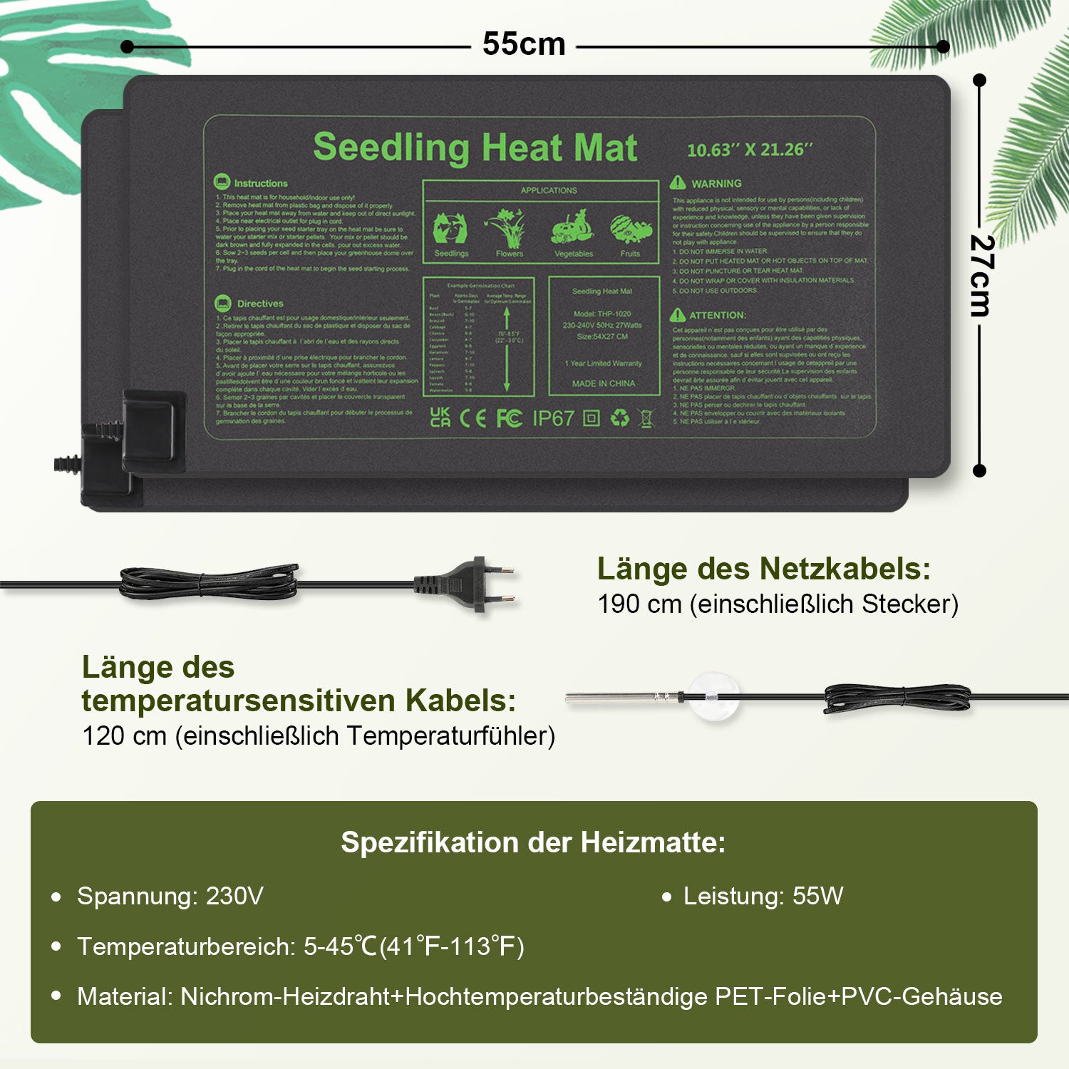 Wide range of applications: The heating pad is suitable for seed germination, nurseries, beer fermentation, breweries, dough yeast fermentation, reptile breeding tanks and many other applications, flower and plant breeding, supports seed germination and plant growth, and is the ideal choice for you to grow plants, reptile care and fermentation products.