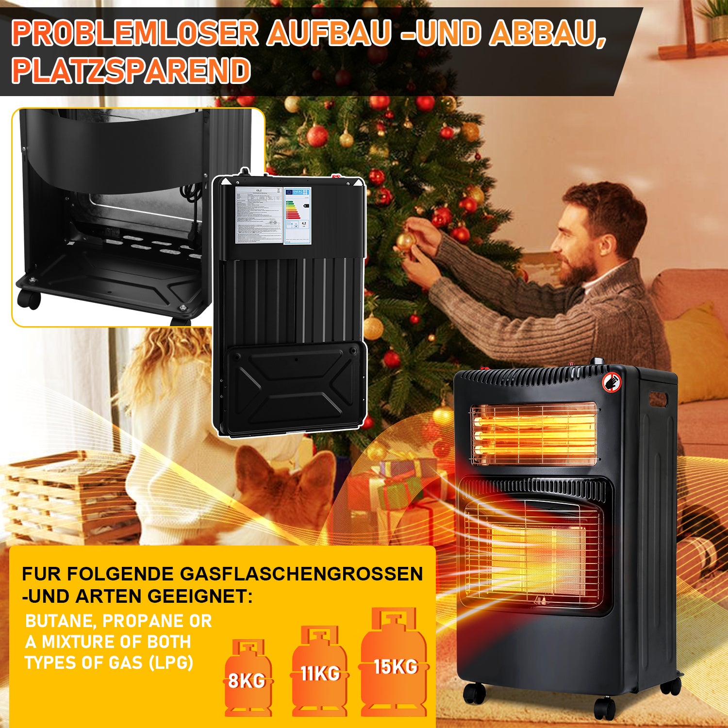 🌟 [Practical & low consumption] Gas heater gas consumption: 110g/h (min), 200g/h (med), 306g/h (max). Piezo ignition and electric heating, suitable for well-ventilated indoor spaces and wind-protected outdoor areas.