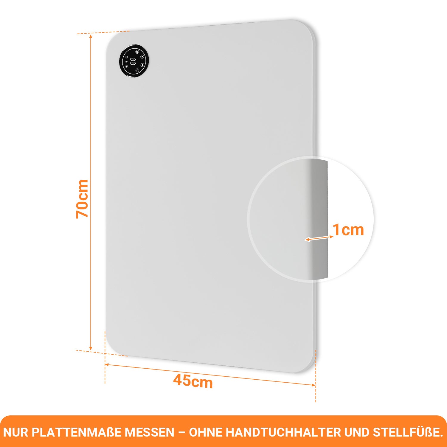 Präzise Temperaturregelung: Infrarotheizung Einstellbereich 5-55°C für Schlafzimmer, Wohnzimmer, Badezimmer. Integrierter Handtuchhalter ermöglicht schnelles Trocknen feuchter Handtücher.