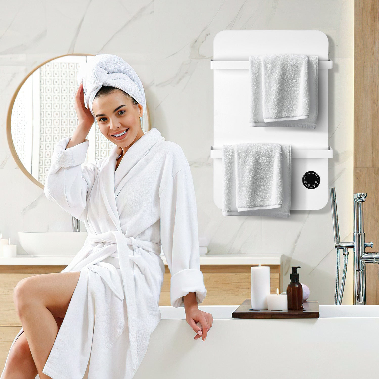 Dieser 400W/600W Infrarotheizung kombiniert effiziente Heizleistung mit einem praktischen Handtuchhalter aus Metall, ideal für den Einsatz in Schlafzimmern, Wohnzimmern und Badezimmern.