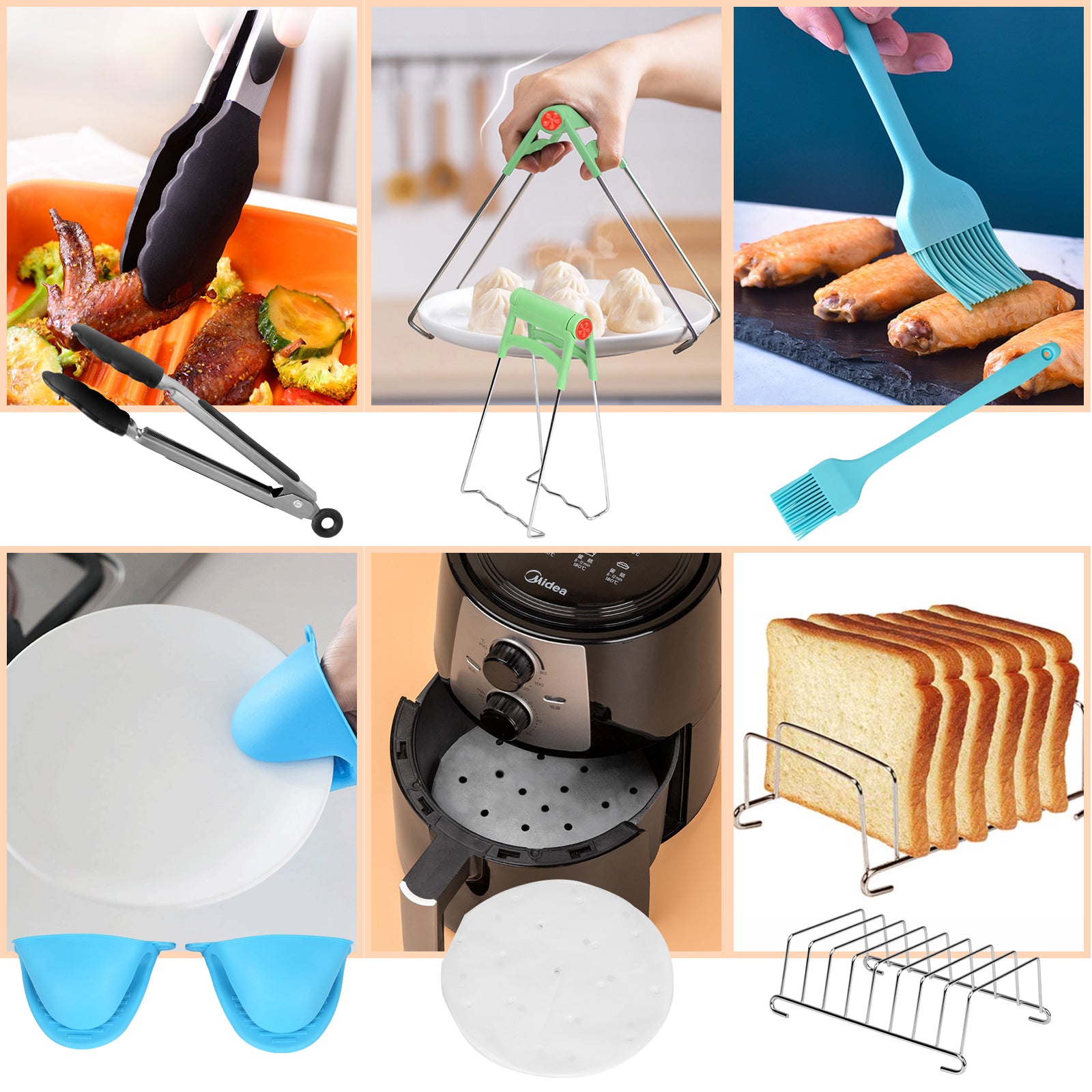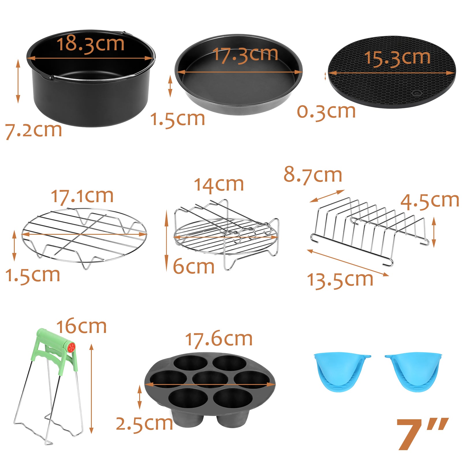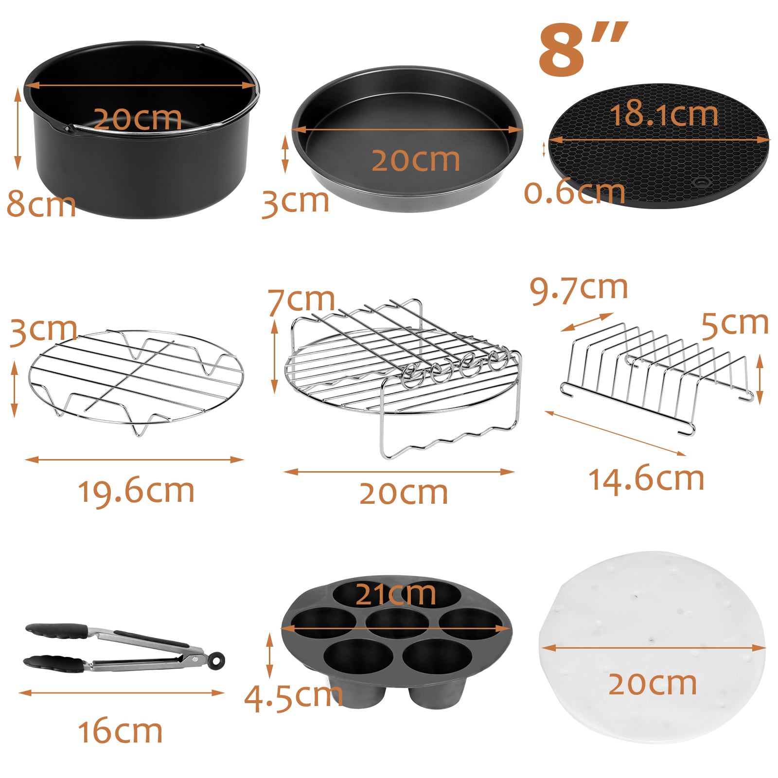 【Multipurpose】With our air fryer accessories, you can prepare a variety of dishes! Bake your favorite cakes in the cake bucket, bake delicious pizzas on the pizza tray, and make skewers on the grill.