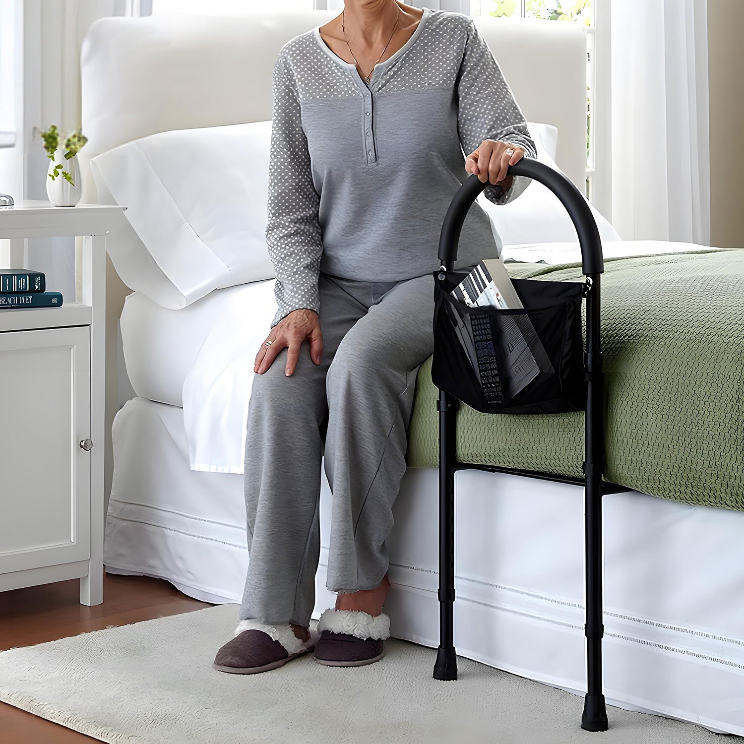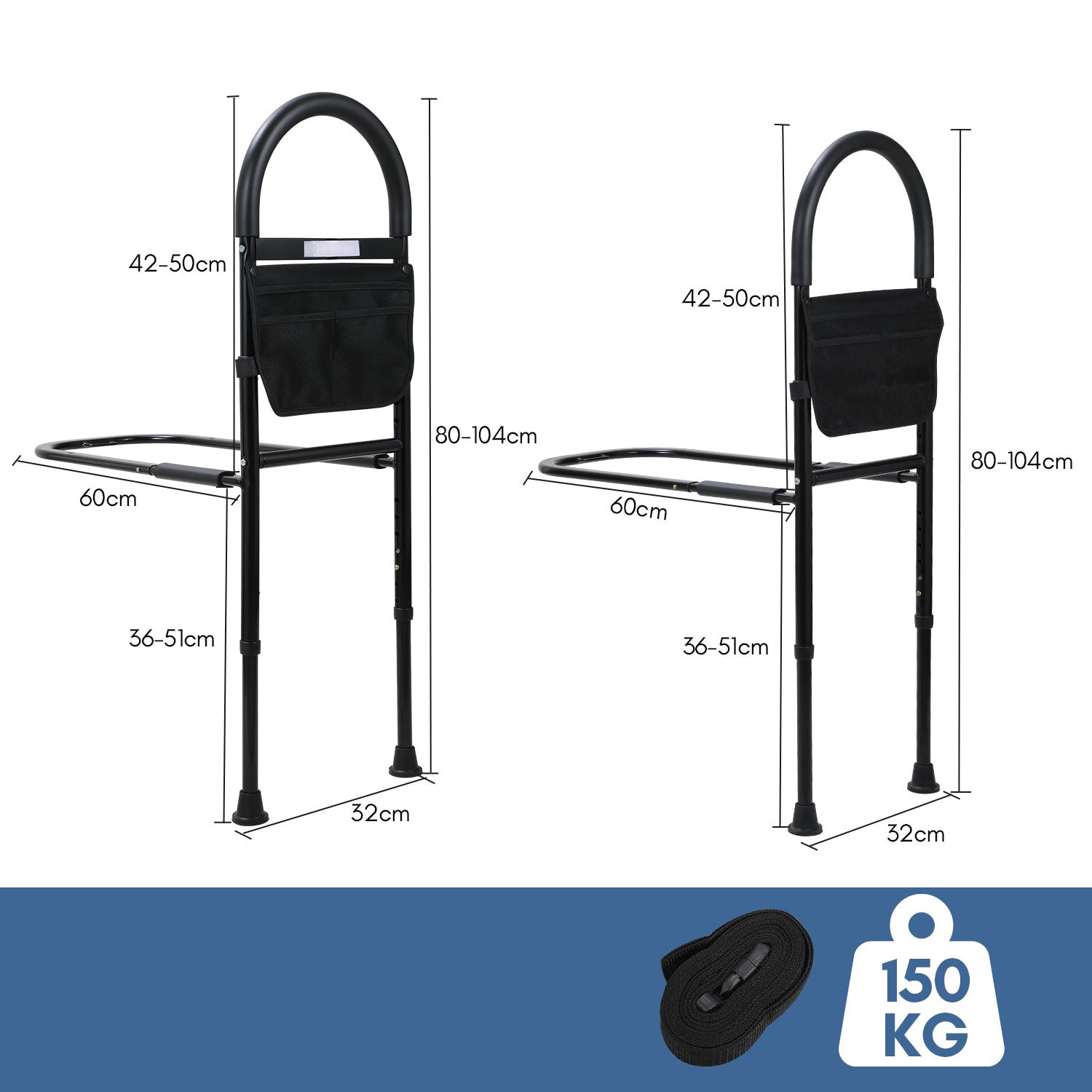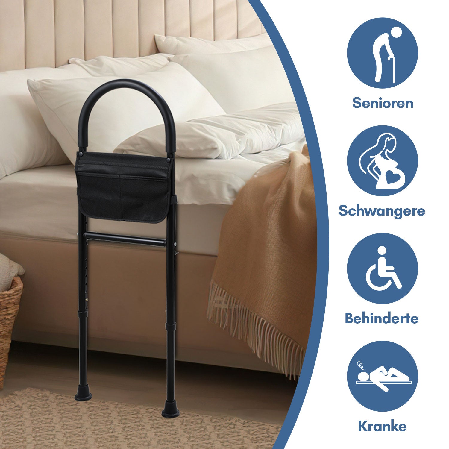 [Robust and durable] The stand-up aid for seniors is made of sturdy steel and can withstand loads of up to 150 kg. It should be mounted on beds whose bed frame is flush with the edge of the bed (not suitable for recessed beds).