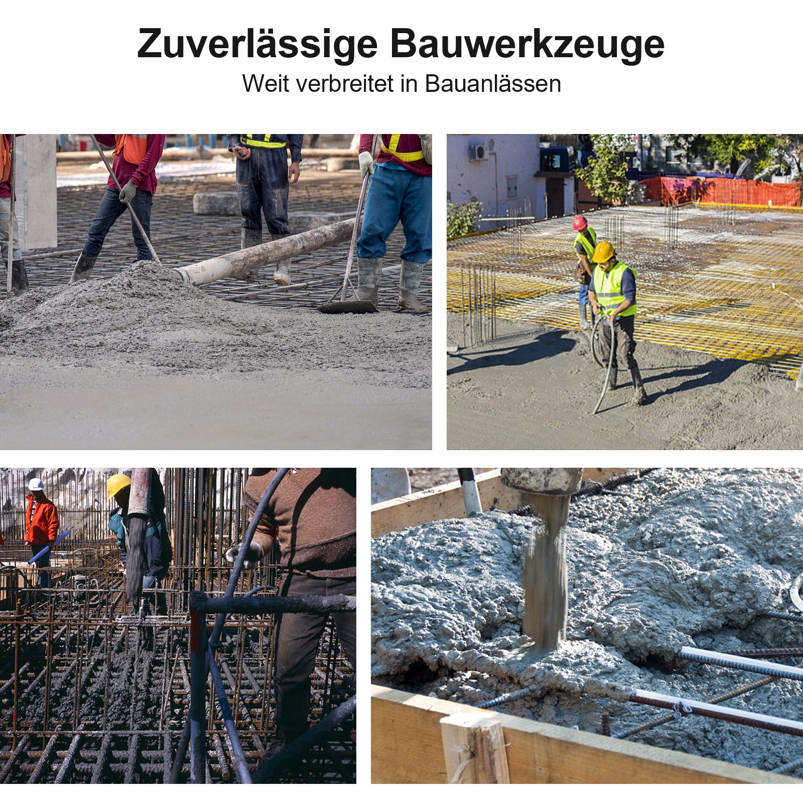 【Fully compressed】 The vibrating bottle impresses with its high-quality workmanship made of rubber, inner steel band and steel mesh reinforcement. This portable concrete compactor has an output of 1000 watts and a super power that can eliminate all airlocks and voids. Optimal compaction of fresh concrete.