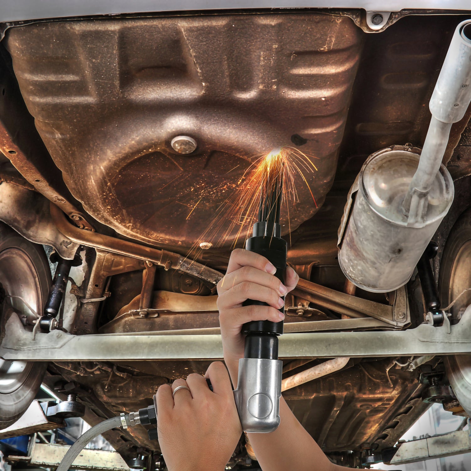 STRONG PERFORMANCE: With an impact rate of 3000 rpm at an operating pressure of 6.3 bar, you can remove even stubborn rust. In addition, the pressure can be easily and continuously regulated using the supplied coupling plug.