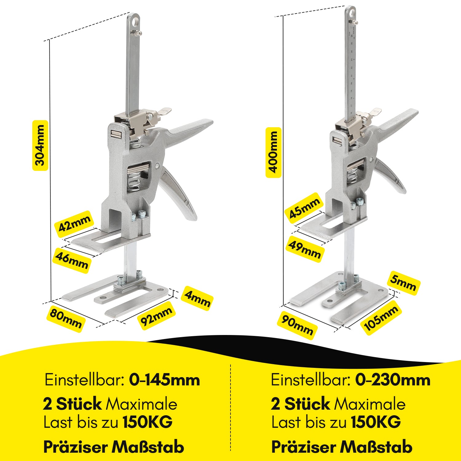 【Durchdachtes design】Das verbreiterte Design des Griffs erhöht die Kraft und ist bequemer zu bedienen. Es ist leicht und tragbar, praktisch für Bauarbeiten und Szenarien mit umfangreicher Nutzung. Die große Grundfläche kann die Installation stabiler machen und es ist bequem, die erforderliche Höhe einzustellen, um große Gegenstände zu heben.
