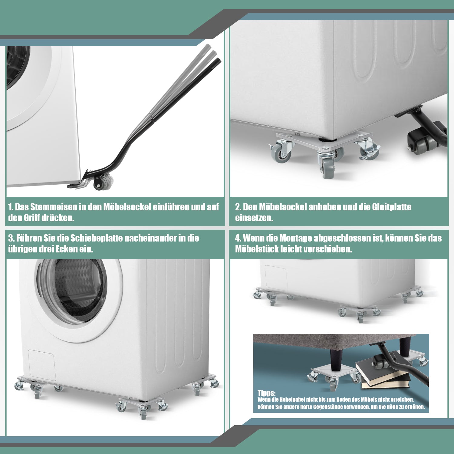 With load lifter: The furniture lifter is equipped with a locking mechanism to ensure safe lifting and moving of furniture. With a 120° angle and a maximum load capacity of 250KG, you can effortlessly lift furniture and place the furniture rollers underneath.
