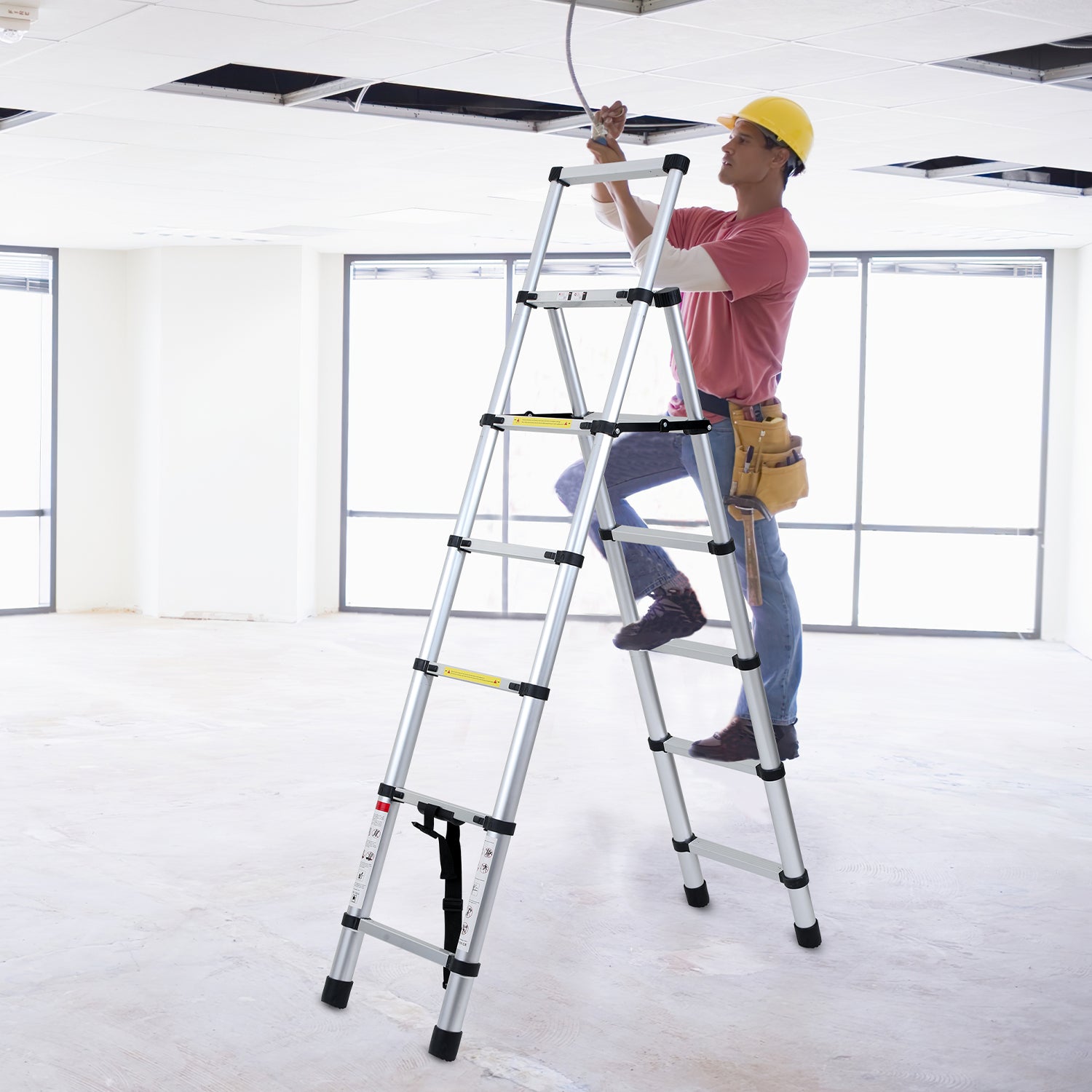 【High-quality material】A-frame telescopic ladders are made of high-quality and durable aluminum alloy, strong and safe, rust-proof and durable, can provide good support and can bear up to 150 kg for a wide range of applications.