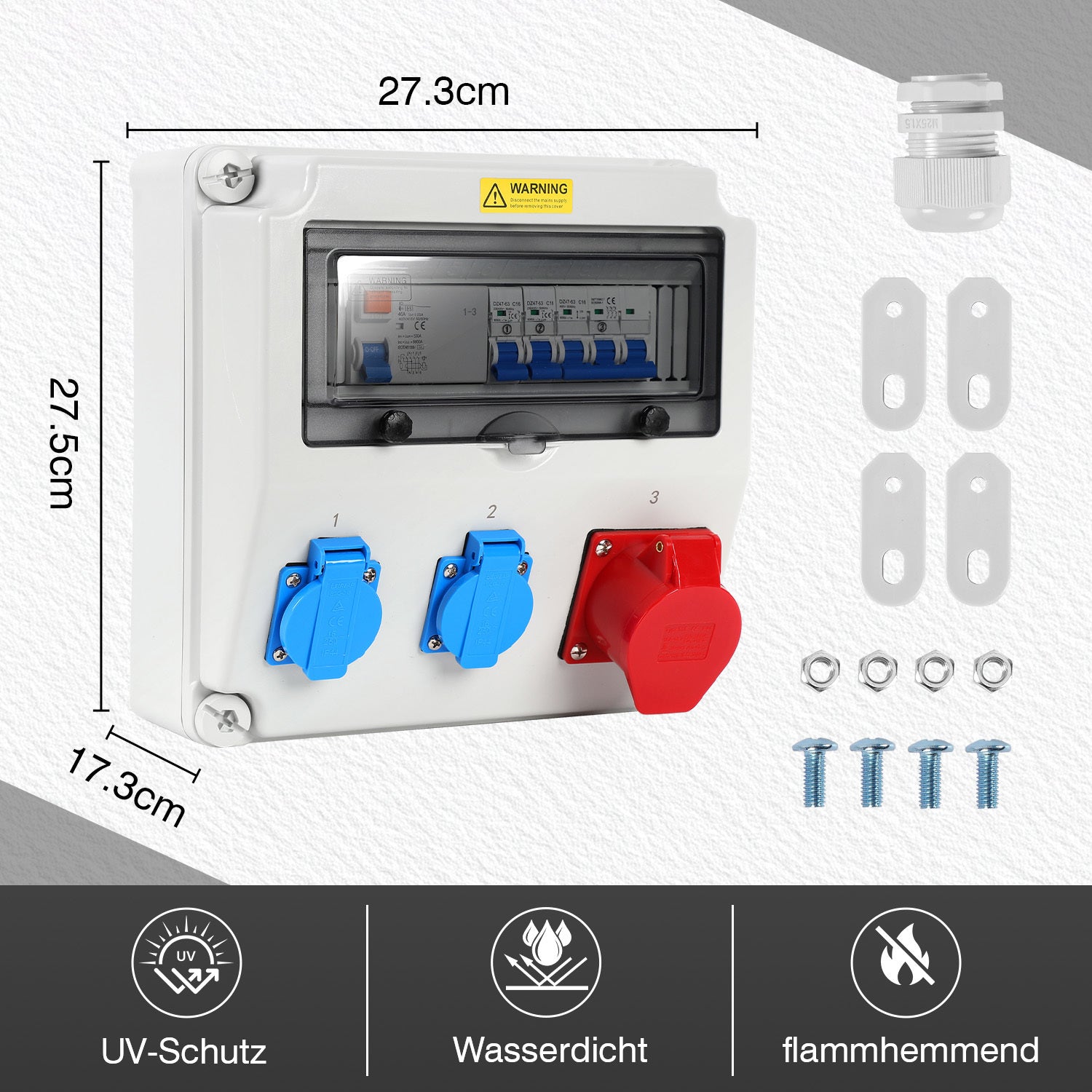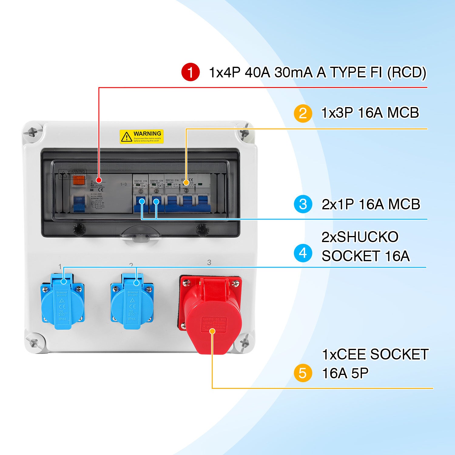 - incl. 1 x CEE-16/400V socket, 2 x 230V Schuko sockets