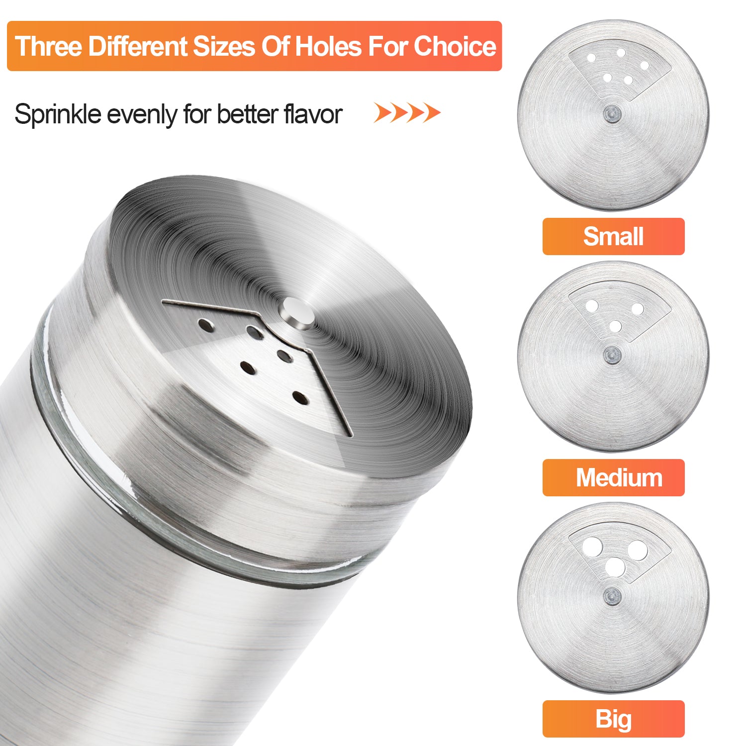 🍗Various uses: Our spice bottles are suitable for all kinds of spices. You can conveniently save salt, white sugar, cumin, pepper, paprika, sesame, tea, basil, etc.