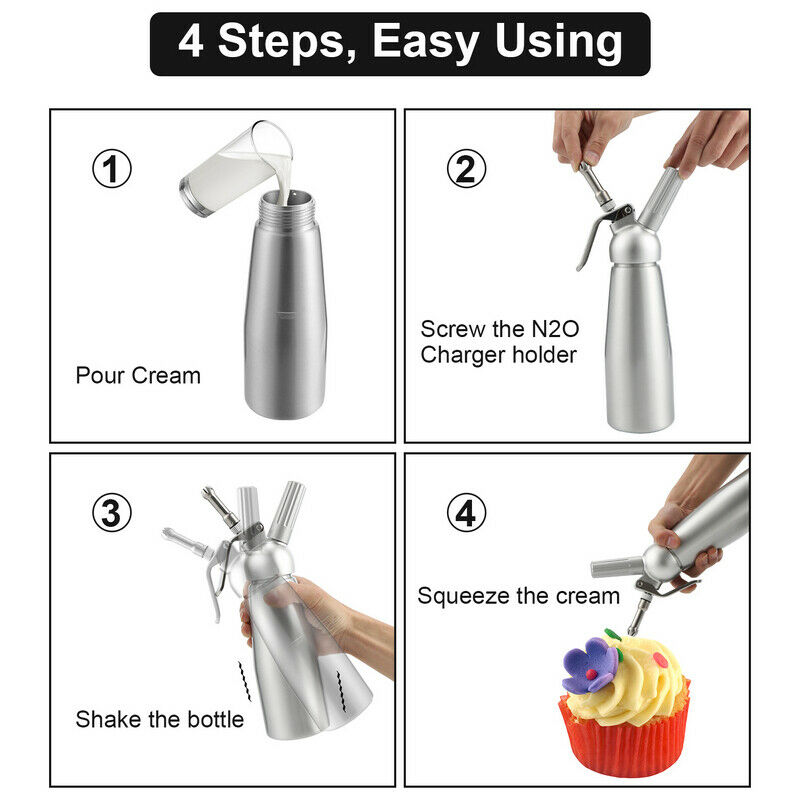 ❤Universal - The cream sprayer works with all commercially available 500 ml 8 g N2O cartridges (note: not included)