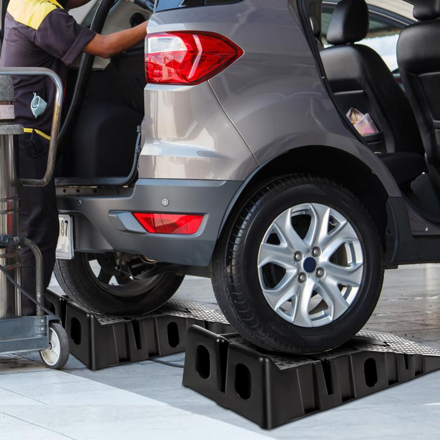 【Suitable dimensions】The car ramp is a practical accessory for vehicle users. It can be used on curbs, stairs, driveways, garages, parking lots. Most steps, loading ramps and parking lots are no problem for this ramp.