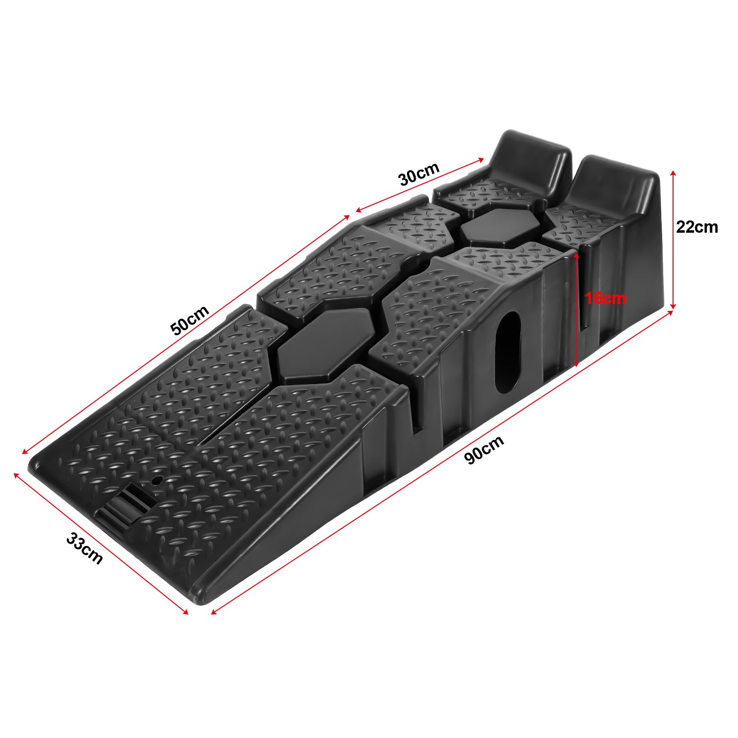 【Wide range of applications】The ramp measures 90 x 33 x 22.5 cm and fits most vehicles, allowing it to be precisely secured under the car. 2 ramps weigh 9 kg, but it has a load capacity of up to 2.5 tons, which maximizes transportability and increases portability.