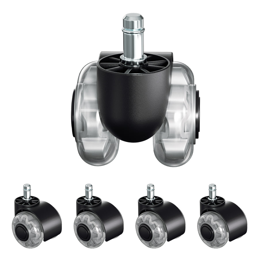 360 Degree Rotation Without Scratches: The precision ball in each office chair wheel is designed to provide 360 degree steering for the best rolling experience. Equipped with two clear double ball bearings and shock-absorbing tires, while the individual casters on the clear double wheels can bear up to 25kg. The double row of wheels provides extra stability to prevent floor damage or slipping, and glides quietly and silently. The 5 casters can bear up to 125kg, which increases the load capacity of the wheels.