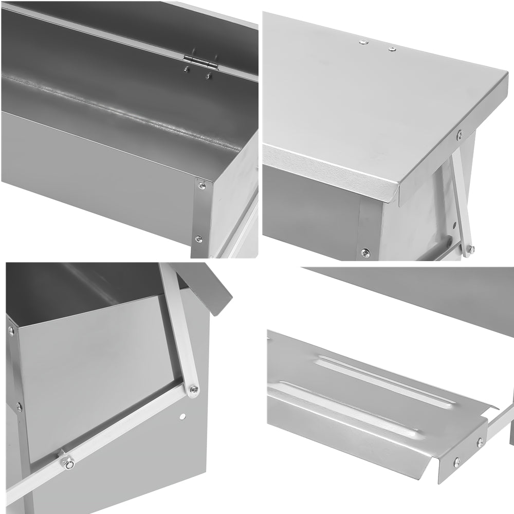 🐔 【High-quality material】Feeding trough is easy to use and easy to assemble. This poultry feeder is made of high standard galvanized steel. It is weatherproof, high temperature resistant, durable, rust-proof and corrosion-free, has a long service life.