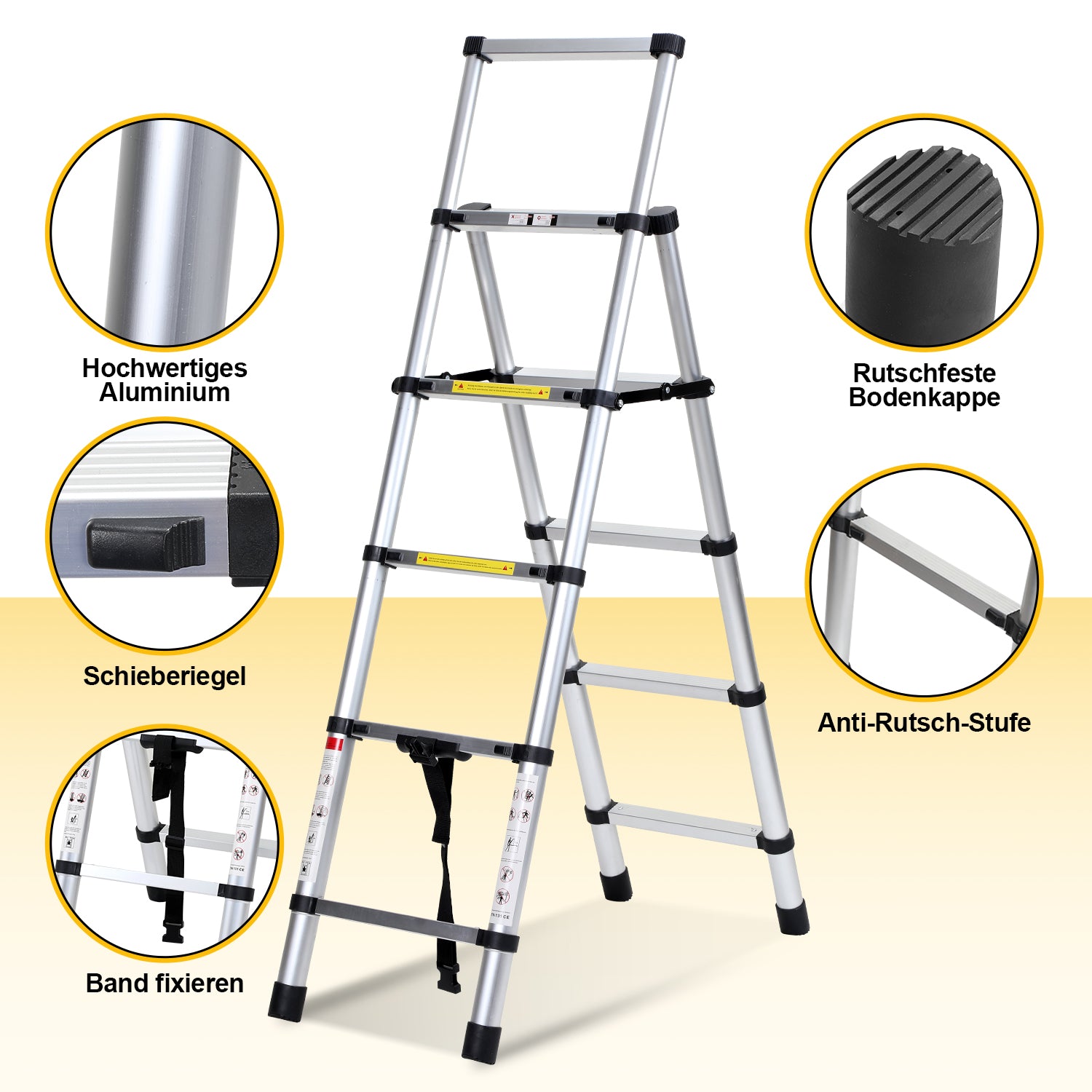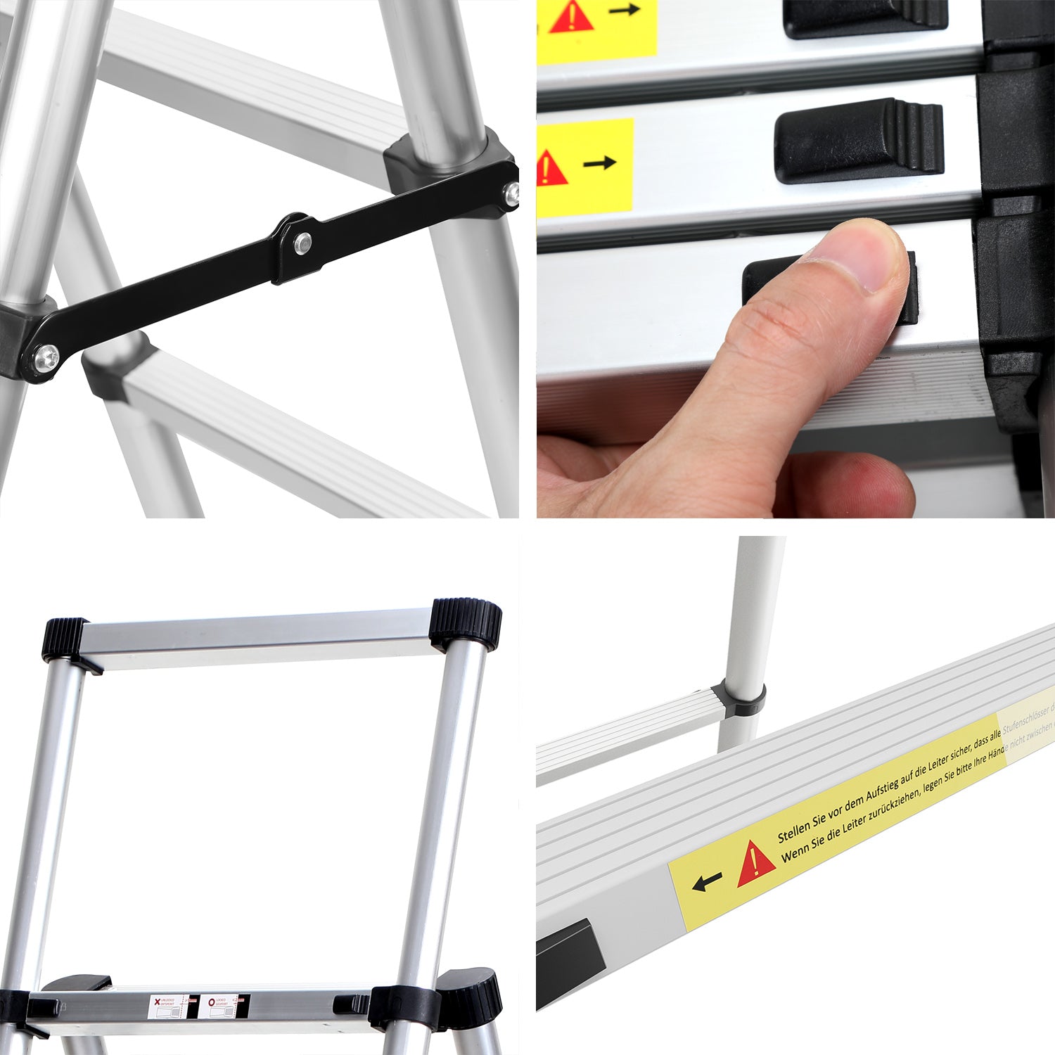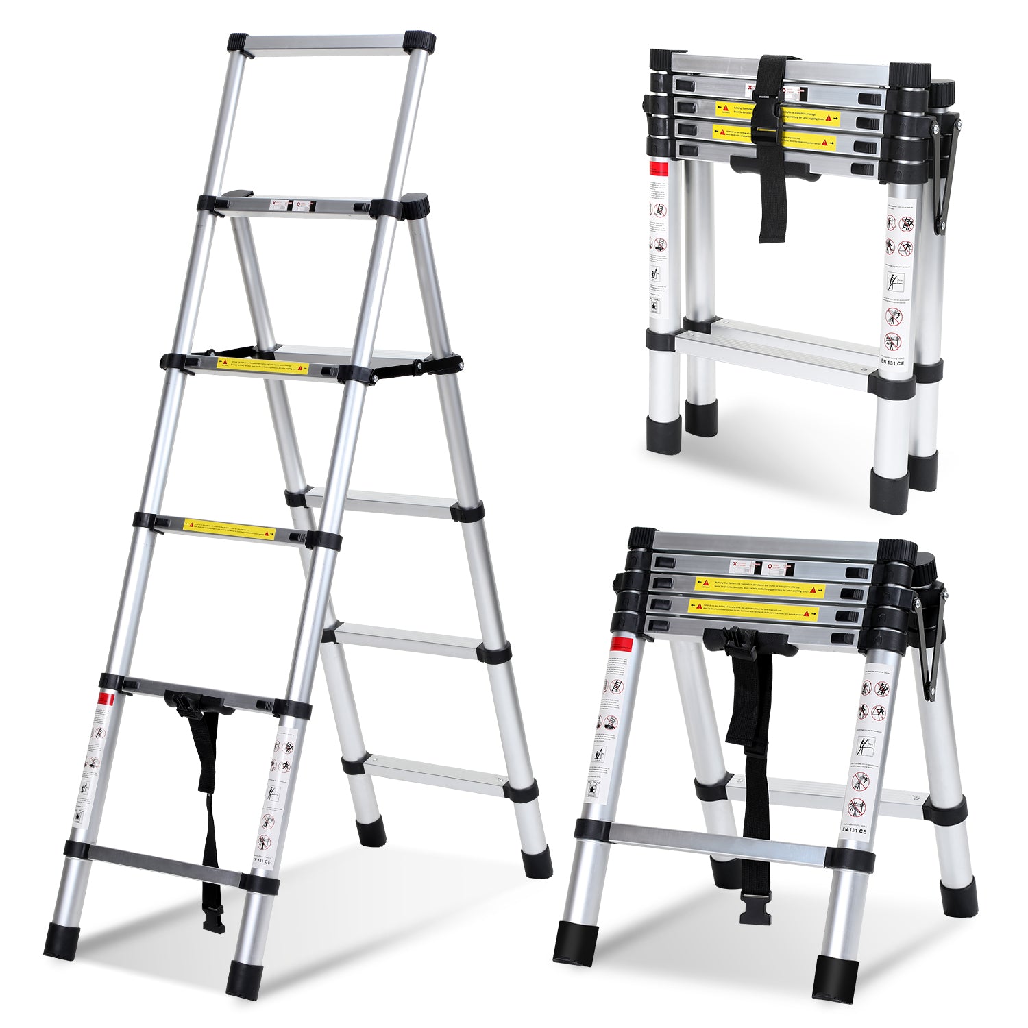 【High-quality material】A-frame telescopic ladders are made of high-quality and durable aluminum alloy, strong and safe, rust-proof and durable, can provide good support and can bear up to 150 kg for a wide range of applications.