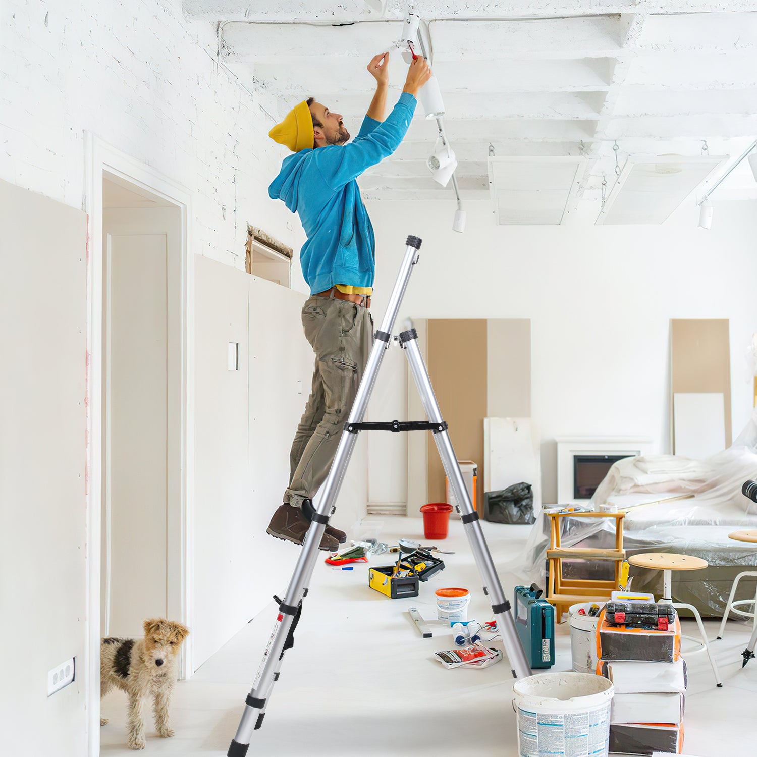 【Multi-safety protection】A-frame telescopic ladder is equipped with main safety guarantees: finger pinch protection and non-slip rubber feet, which prevent your fingers from being pinched and causing a hazard. The non-slip rubber feet increase the stability of the telescopic ladder to avoid the risk of tipping over.