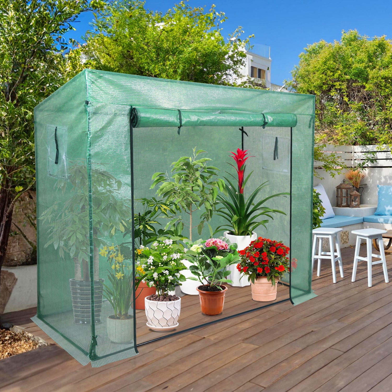 Unser Gewächshaus kann Ihre Pflanzen im vor Regen, Wind, leichtem Schnee, Hochwasser oder Frost geschützen. Zu allen Jahreszeiten einsetzbar.
