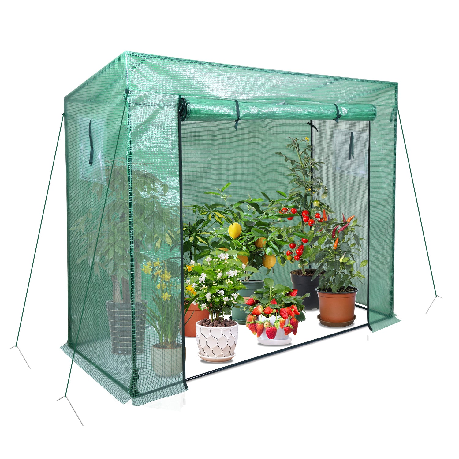-Folien Gewächshaus mit aufrollbarem Frontfenster