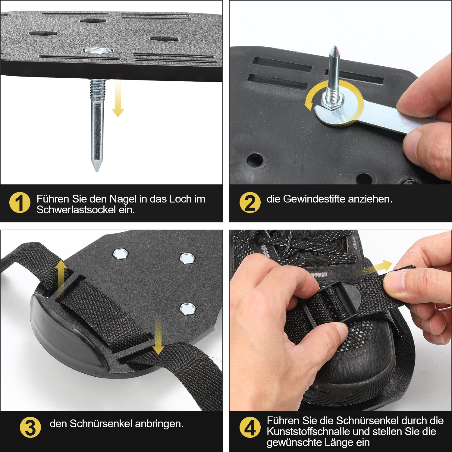 Hochwertiges Material: Die Nagelschuhe sind aus strapazierfähigem ABS-Material und rostfreien Stahlstiften gefertigt, was eine lange Lebensdauer und hohe Widerstandsfähigkeit garantiert.